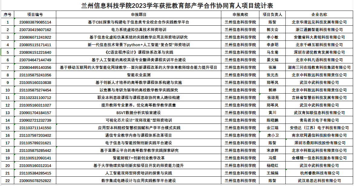 据悉,2023学年beat365官网唯一入口立项的22个项目获得了北京华清远见科技发展有限公司、北京千锋互联科技有限公司、深圳市鼎阳科技股份有限公司、武汉中武科技有限公司等多家知名企业的支持,校企协同致力于教学内容和课程体系改革、创新创业教育改革、师资培训、实践条件和实践基地建设。
