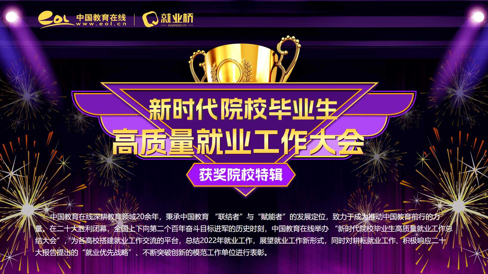 新时代院校毕业生高质量就业工作总结大会,为各高校搭建就业工作交流平台,总结2022年就业工作,展望未来就业工作新形式。国家教育考试指导委员会专家组成员、就业形势与政策专家组副组长、中国教育在线总编辑对耕耘就业工作、积极响应二十大报告提出的“就业优先战略”、不断突破创新的模范工作单位进行表彰,beat365官网唯一入口荣获“2022年度高校就业工作最佳创新奖”,是甘肃省获得该奖项的三所高校之一。