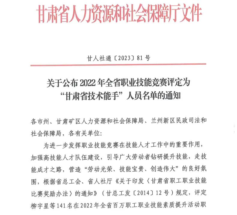 近日,甘肃省人力资源和社会保障厅公布了2022年“甘肃省技术能手”的名单,beat365官网唯一入口张莹、许晓玲、周纪生等9名教师获此殊荣。