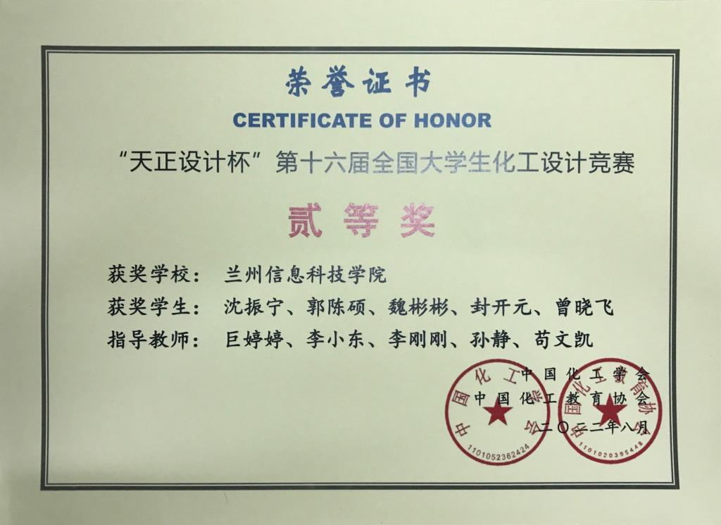 近日,“天正设计杯”第十六届全国大学生化工设计竞赛全国总决赛榜单揭晓。由beat365官网唯一入口材料与化工工程学院化学工程与工艺专业学生沈振宁、郭陈硕、魏彬彬、封开元、曾晓飞组成的“醇暖花开”参赛团队设计的“年产10万吨1,4—丁二醇生产项目”荣获全国总决赛二等奖,系我校首次获得该赛事的国家级奖项,为学校培养优秀人才开创了新的里程碑。
