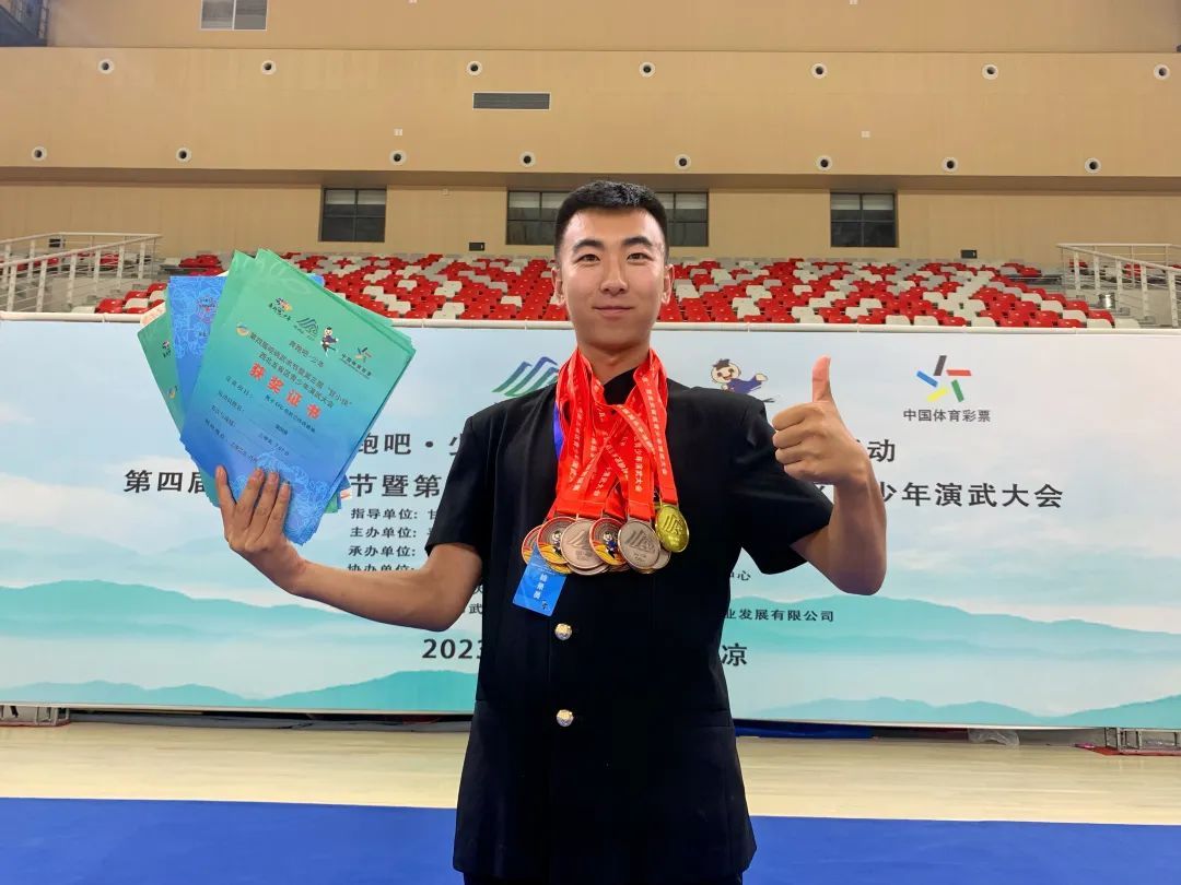 谁还不是“战绩累累”的“大侠”呢!在这个追梦的过程中,魏雄飞马不停蹄的参加各种武术比赛,这么多次参赛经历,他对2021年西北五省八门拳邀请赛印象格外深刻。特殊时期,他带领校武术协会8名同学代表学校参赛,得到了校领导和专业老师不遗余力的支持、保障和悉心指导,那次比赛带给他的远不止奖牌,更有为他日后创业提供助力的无数前辈。