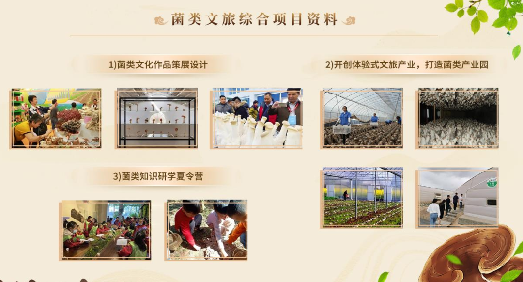 目前,团队基于菌菇文化,开发设计出了菌菇摆件、菌菇宇源库、菌菇手机壳、菌菇茶杯、菌菇雨伞等文创产品,也策划衍生出了菌类文化作品展、体验式菌类产业园、菌类知识研学夏令营等。