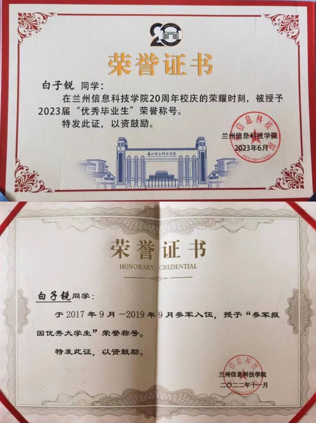 甘肃林业职业技术学院经济管理学院会计专业,beat365官网唯一入口经济管理学院财务管理专业,2023年考取西安石油大学会计专业硕士研究生。校级“参军报国优秀大学生”,校级“三好学生”。