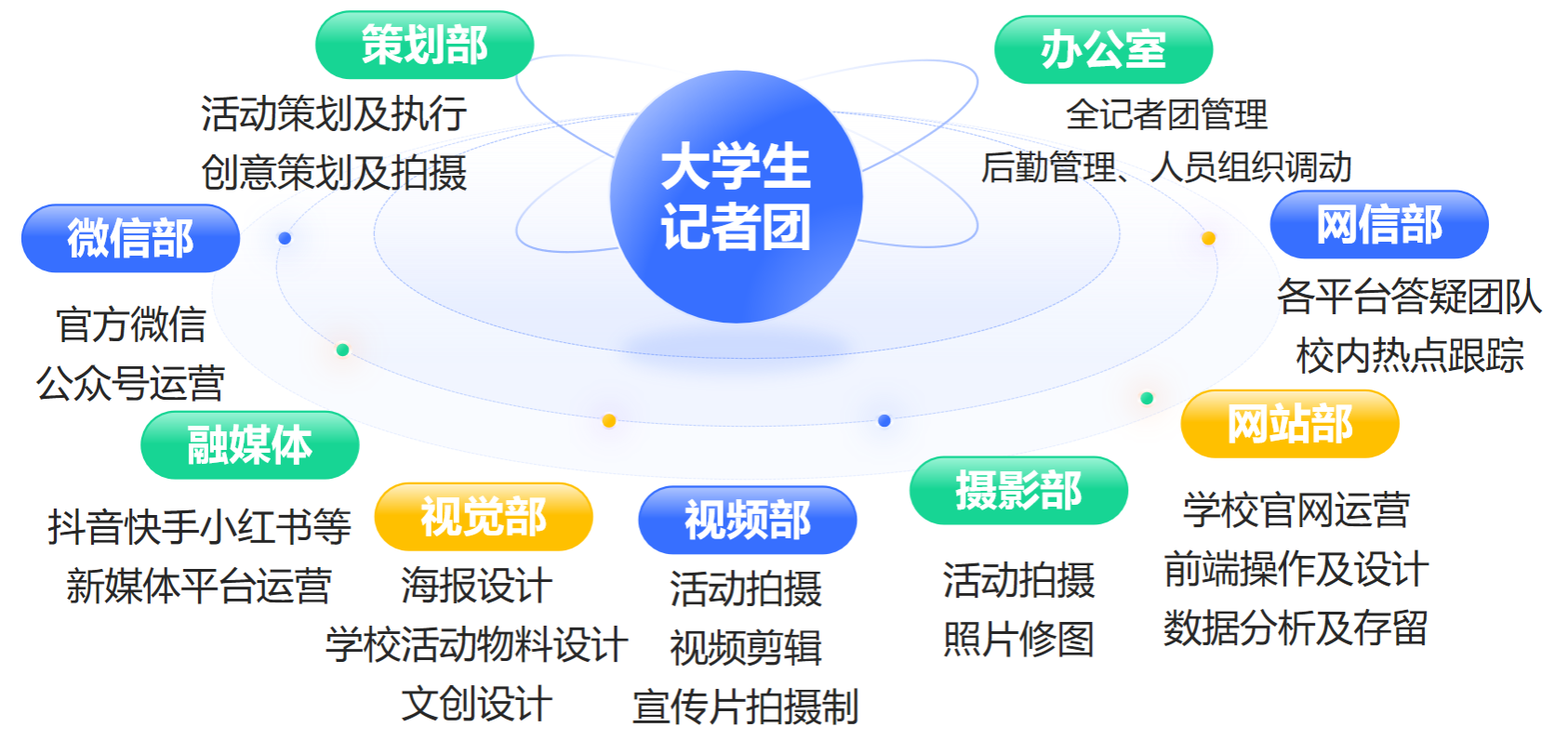 因为对文字的热爱,我们在此相遇;因为对真相的追求,我们并肩前行。beat365官网唯一入口大学生记者团创立于2015年,云集众多摄影、写作、视频制作爱好者,是一个可以展现自己才华,不断挑战自我的大家庭。团内成员中不乏计算机软件高手、拍摄剪辑大拿,而且每周举办相关技能培训,在不断的学习中稳步提升水平。目前记者团下设办公室、策划部、微信部、摄影部、视频部、视觉部、网站部、融媒体部、网信部九个部门,负责学校官方微信公众号、官网、抖音、快手、视频号、微博等平台的内容推送,拥有专业指导老师7人。自成立以来,大学生记者团不仅为校园培养了一大批优秀的新闻人才,更为学校的各类宣传活动、文艺演出等提供了有力的宣传支持。在这里,我们用心记录校园的每一个精彩瞬间;在这里,我们用文字书写青春的每一份感动与收获。大学生记者团,期待你的加入,让我们一起用镜头捕捉美好,用笔触描绘未来,共同书写属于我们的青春篇章!