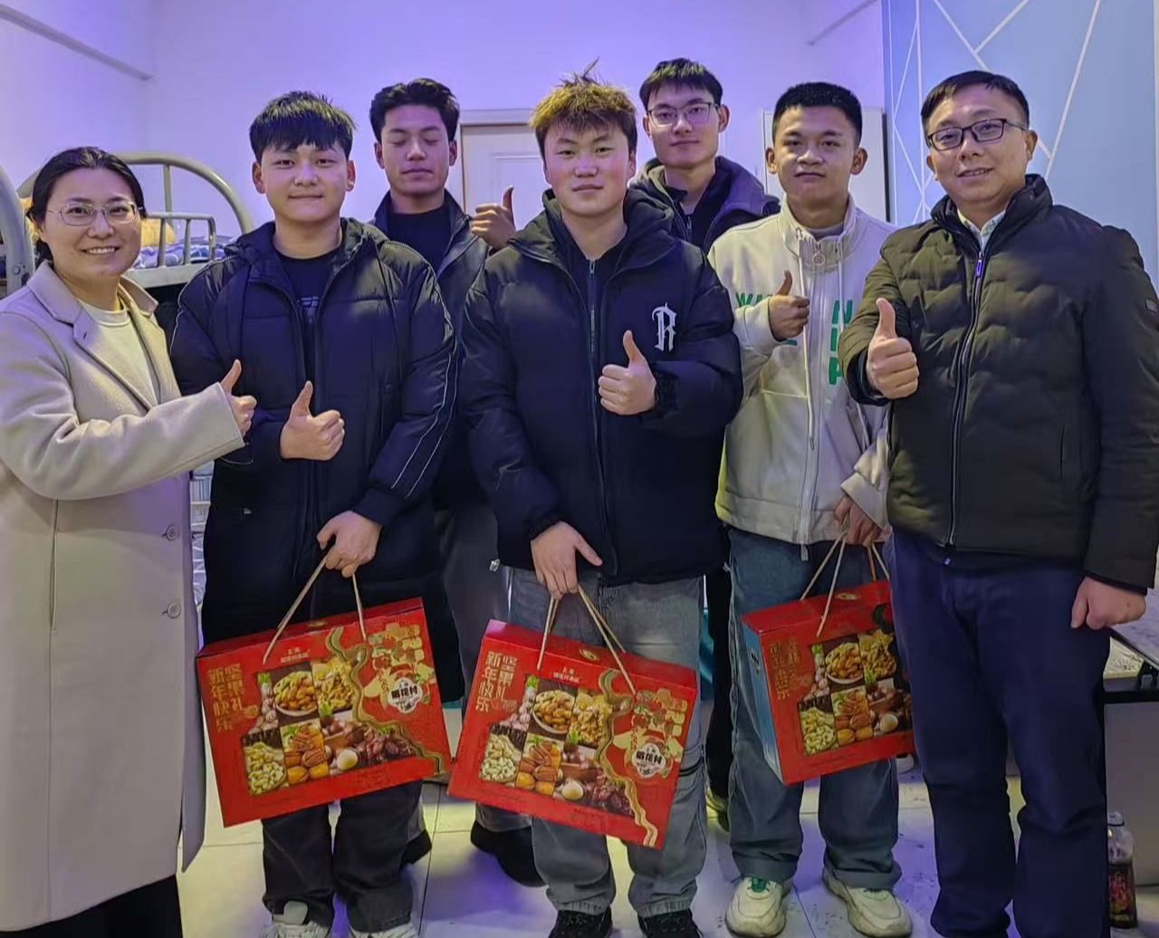1月23日,新春佳节前夕,正值农历小年,长三角就业服务中心的老师带着学校的深切关怀,前往京东方杰恩特喜科技有限公司走访慰问了在这里勤工助学的25名同学。老师们详细了解同学们的工作情况和生活状况,为他们送上了学校精心准备的新春大礼包,礼包中包含了丰富的年货和学习用品,寄托了学校对同学们的节日祝福和殷切期望。