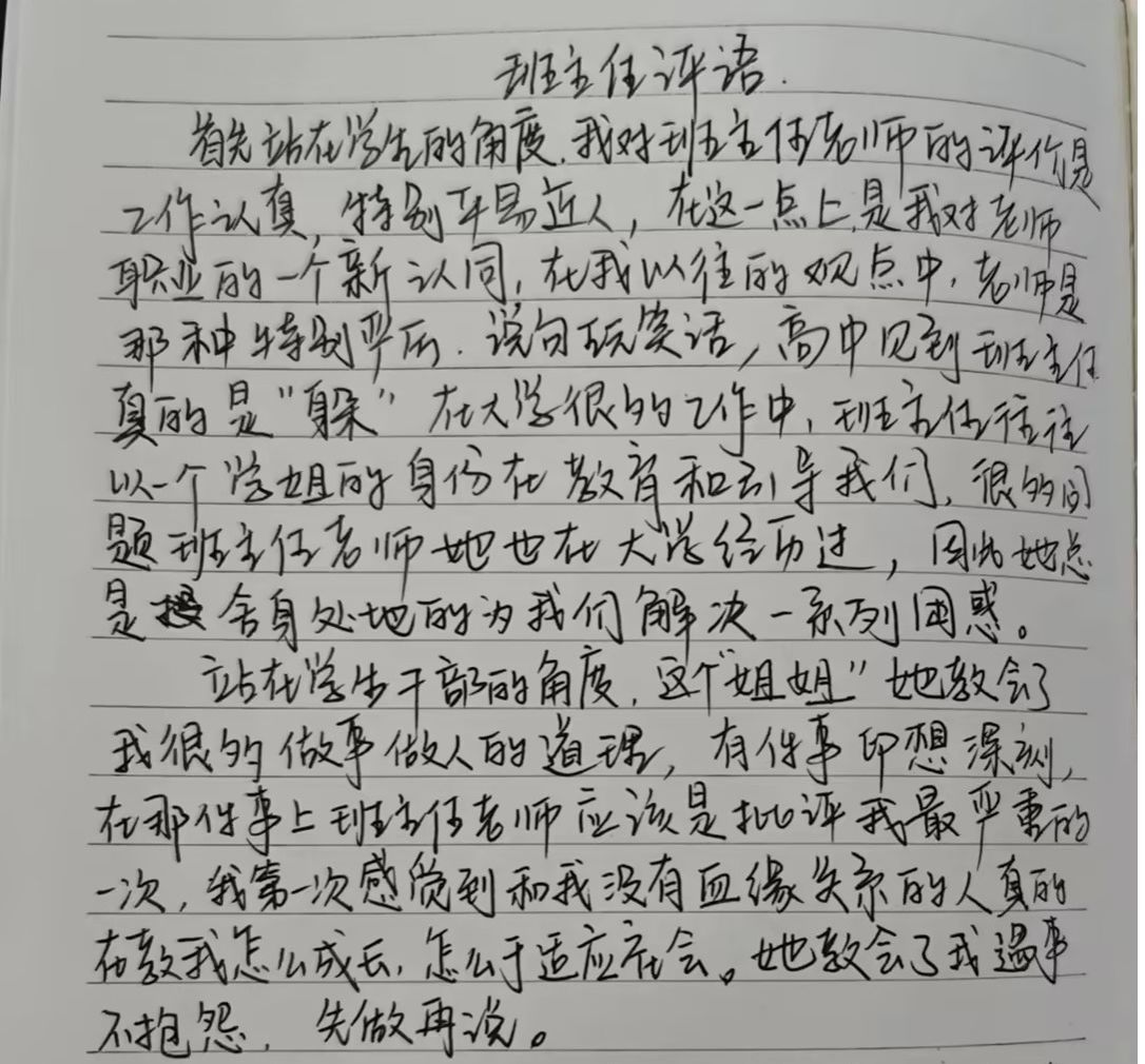 2021级测绘工程4班班主任刘娅娅老师说:“作为一名班主任,时常提醒自己热爱所从事的事业,喜爱所带的学生,努力成为学生的良师益友,在今后的工作中继续探索和努力。”