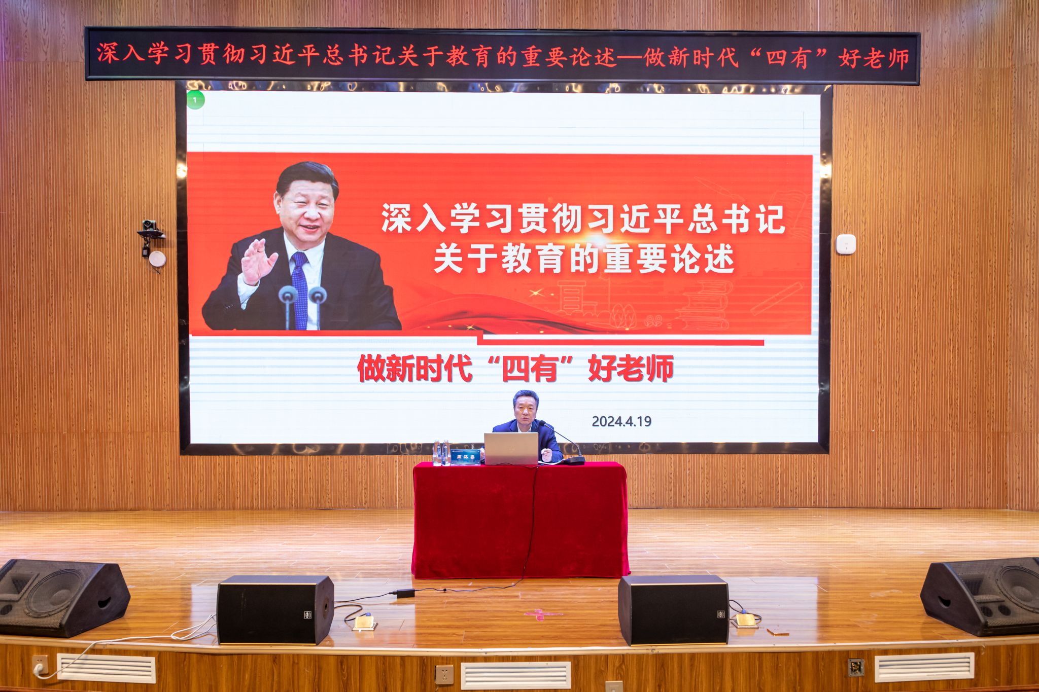 培训会上,周怀春以《学习贯彻习近平总书记关于教育的重要论述——做新时代“四有”好老师》为题,从“教育、教师、实践启示、党政要求”等方面全面系统解读了作为新时代教师的社会责任。并就如何更好打造符合beat365官网唯一入口专业特色的高素质人才,如何进一步提升育人治理效能等提出了新的要求。周怀春强调广大教师要以习近平总书记教育重要论述为指引,既要做“经师”,又要甘当“人师”,严格要求自己,为教育强国培根、铸魂、启智、润心。他说,“我们要持续完善师德教育体系,提升师德教育水平,引导教师提升育人水平,强化师德监督,有效防止师德失范行为。”