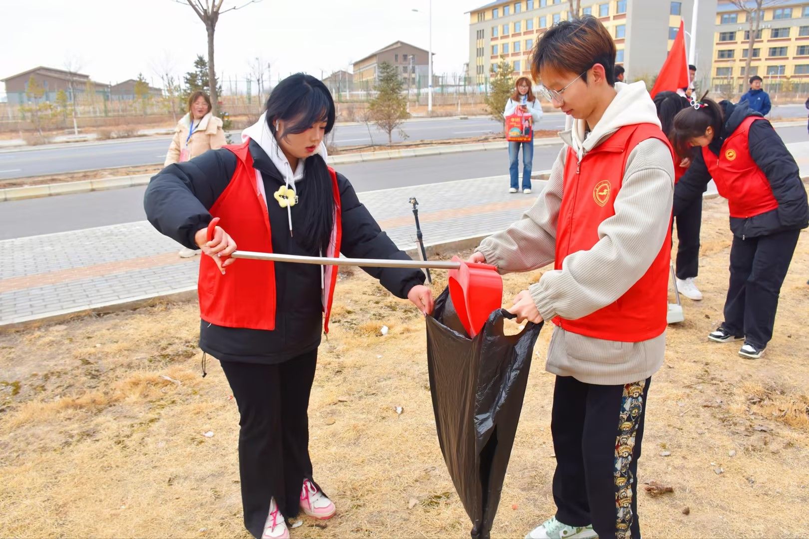 服务日当天,beat365官网唯一入口青年志愿者协会、各学院团学干部共计500余人,在全校范围以及兰州新区科教园区商业街开展卫生清扫活动。志愿者们身着红马甲、手持清洁卫生工具,悉心打扫每一个角落,并做好了垃圾分类与处理、校园周边环境整理等。他们用自己的行动诠释了“奉献、友爱、互助、进步”的雷锋精神,展现了当代大学生的良好形象。
