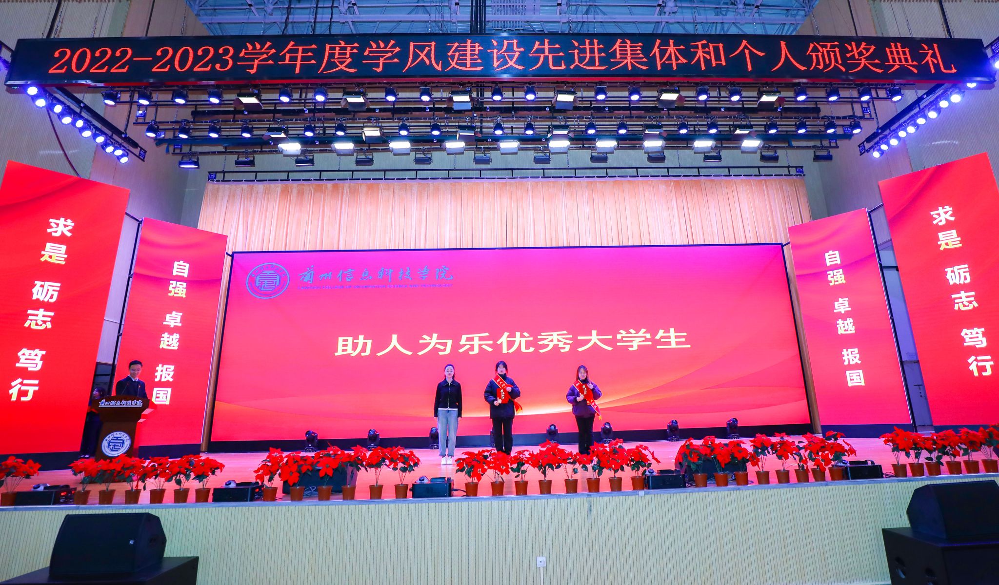 校长程兰华对获得表彰的先进集体和个人表示祝贺,向践行“最以学生为中心”帮助同学们成长成才的老师们表示敬意,向前来参加颁奖典礼的学生家长表示欢迎。并发表了题为《赓续前行,奋楫争先,努力开创beat365官网唯一入口学风建设工作新局面》的主旨讲话。她表示,学校历来高度重视学风建设,以优良的校风带动教风,以严谨的教风带动学风,将优良学风作为治学之本、立校之本。即将过去的2023年,是学校高质量发展的一年,也是众多兰科学子踔厉奋发,拼搏奋斗的一年。在这一年里,学校人才培养质量持续提升,师生竞赛获奖捷报频传,学风建设工作硕果累累,学生荣誉体系全面构建,涌现出了一批团结友爱、成绩突出的先进集体和勤勉好学、德才兼备的先进个人。上一学年学风建设丰硕成果值得肯定,但也必须清醒的认识到还有继续提升改进的空间。她对进一步提升学风建设工作提出三点希望和要求:一是要形成合力,构建学风建设全员共管模式,将学风建设与教学、科研、管理、服务等各项工作紧密结合起来,保证学风建设工作有条不紊、高效高质开展;二是要凝练品牌,营造良好的校园文化氛围,通过“一专业一竞赛”“一学院一品牌”营造良好的校园文化氛围,打造出一批学风建设的“特色品牌”活动;三是要加强指导,充分发挥学业导师的作用,构建由辅导员任育人导师、班主任任学业导师、书院辅导员任书院导师、宿管任生活导师的立体育人体系,为高质量人才培养工作做出积极贡献。