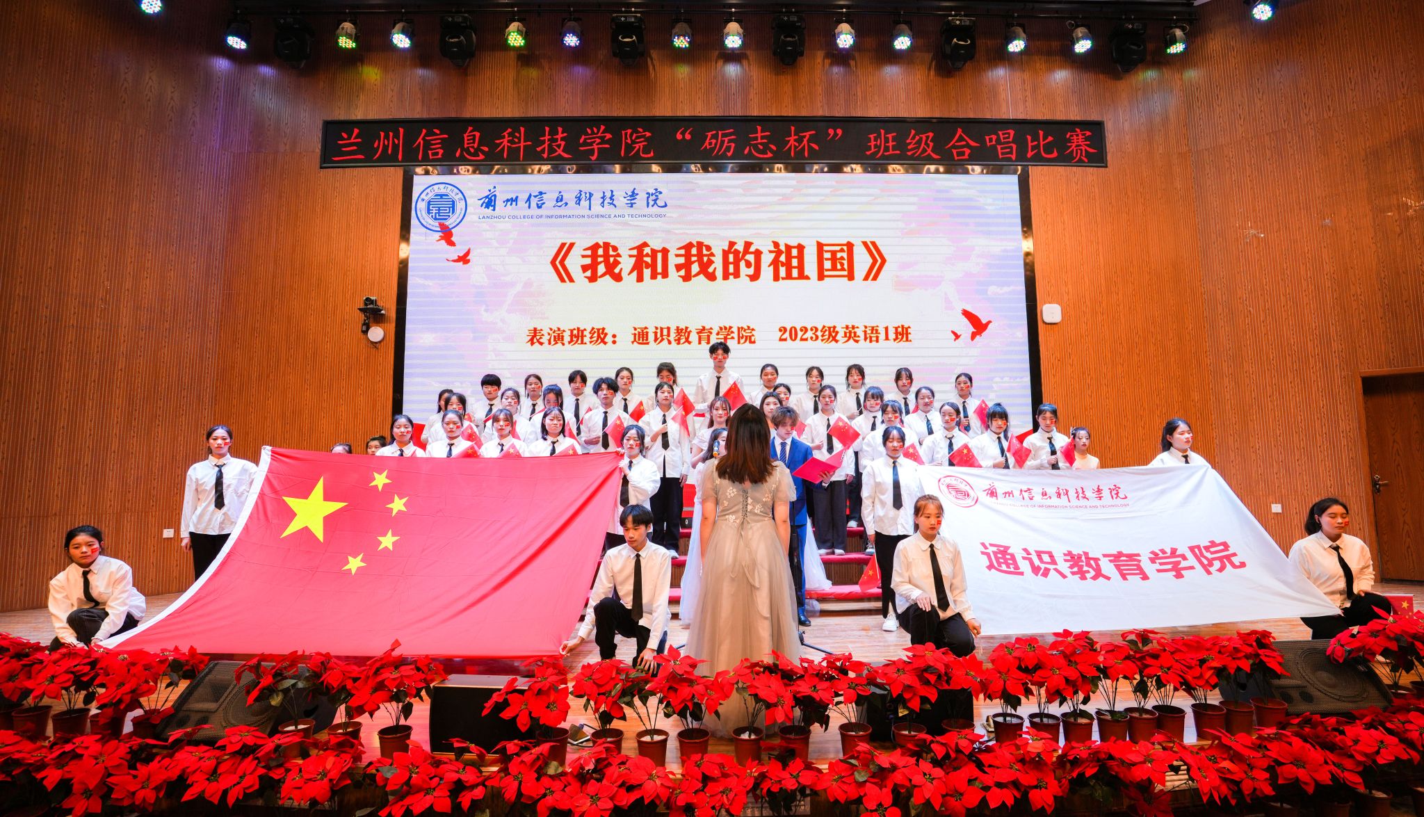 “没有共产党就没有新中国,共产党辛劳为民族,共产党他一心救中国......”“万里长城永不倒,千里黄河水滔滔,江山秀丽叠彩峰岭......”从广为传唱的经典老歌《没有共产党就没有新中国》,《映山红》,《保卫黄河》到脍炙人口的《大中国》《万里长城永不倒》《我和我的祖国》《祖国不会忘记》等歌曲。各参赛队以其饱满昂扬的姿态、基础扎实的唱功、绚丽多彩的表演给观众带来了一场视听盛宴,赢得师生阵阵喝彩。他们用歌声演绎青春岁月,表达对党和祖国的美好祝福与深沉热爱,表现出了新时代的青年人以青春之名投身祖国复兴事业的坚定决心。