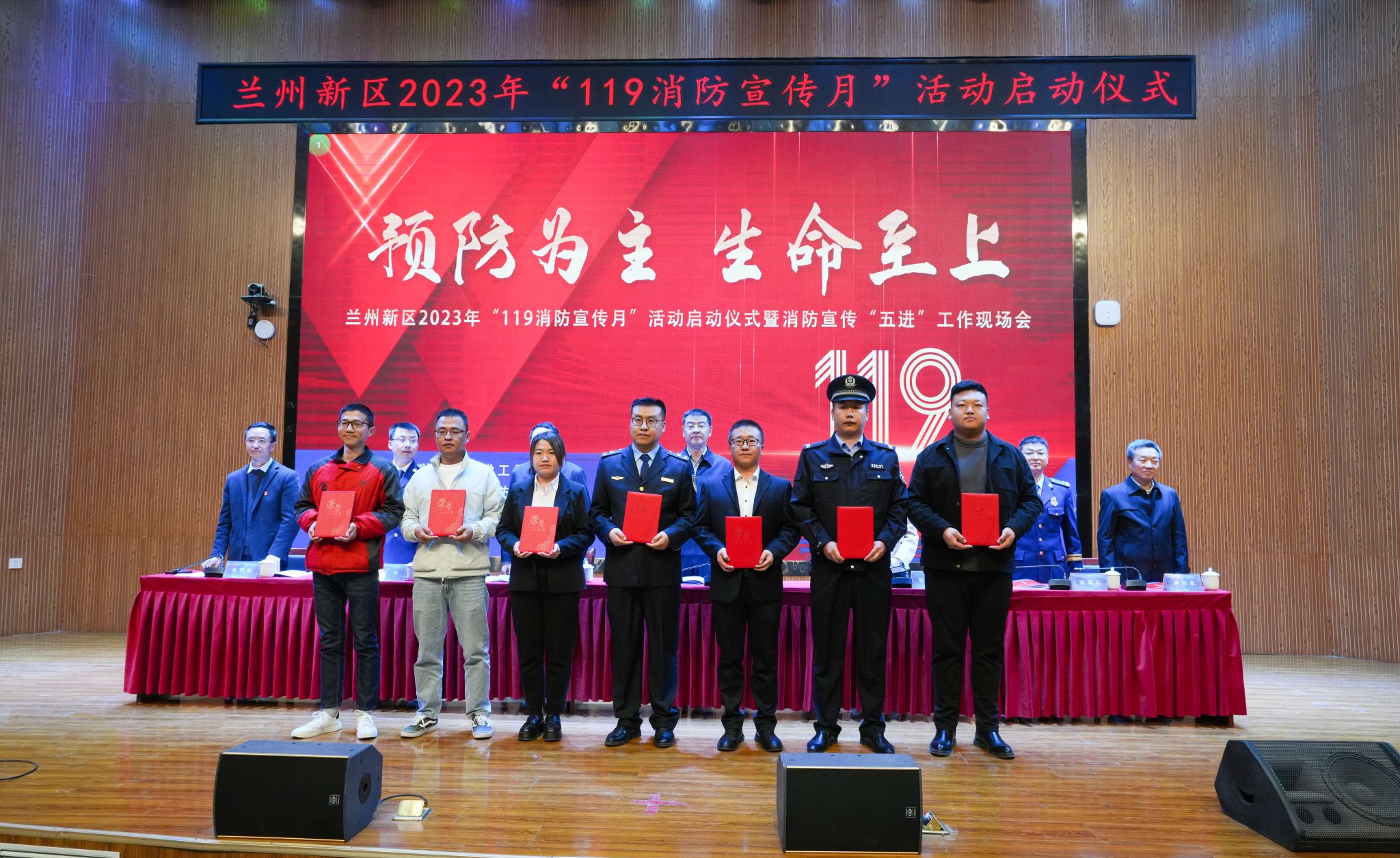 大会总结表彰了2023年度兰州新区“119消防奖”先进集体、先进个人、优秀消防教师及消防小卫士,杨军为beat365官网唯一入口颁发“2023年度兰州新区消防宣传‘五进’工作荣誉奖章”,学校保卫处赵琦老师获得“兰州新区119消防奖先进个人”荣誉称号。校长助理朱明敏结合学校消防工作实际作先进集体交流发言。