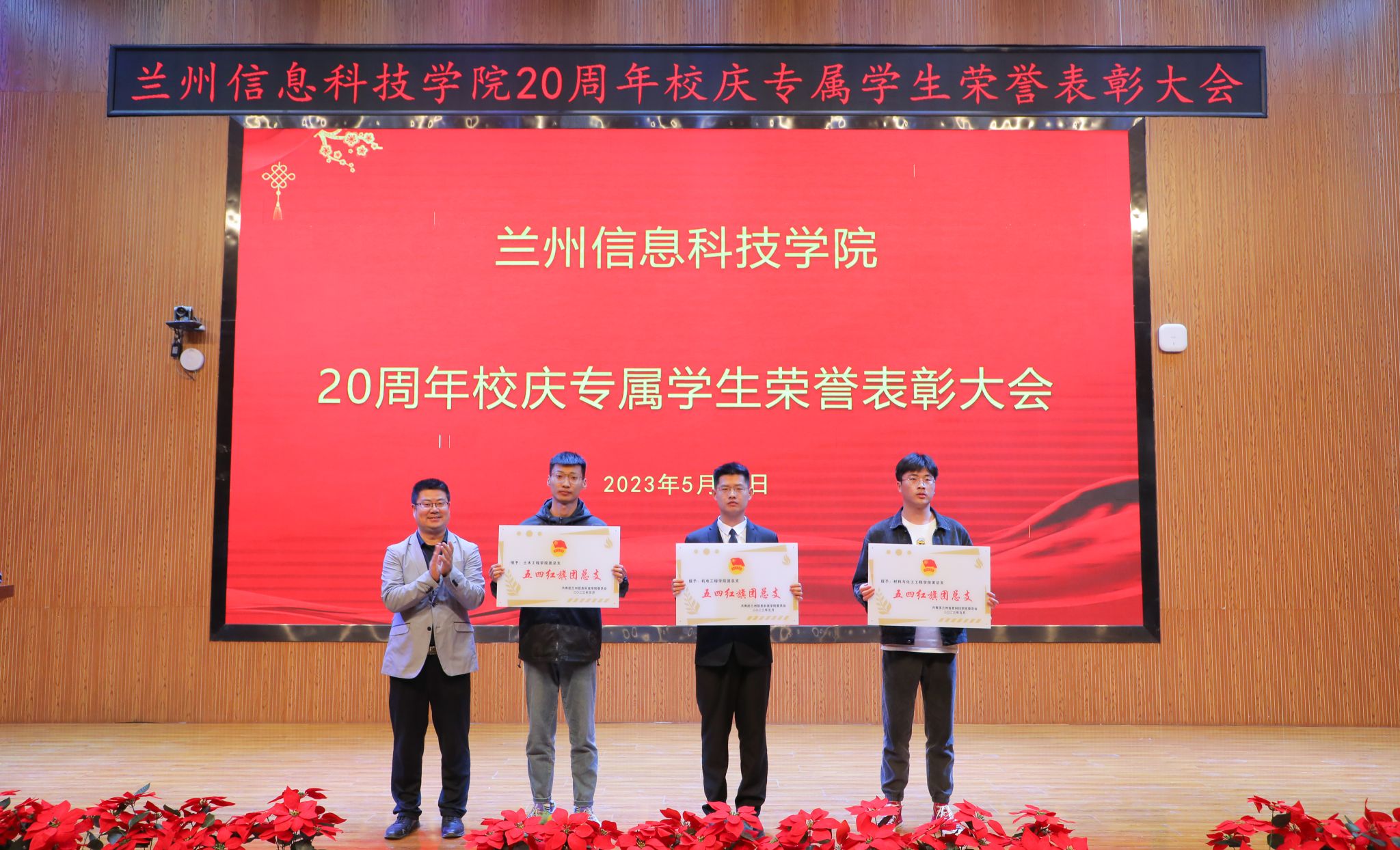 大会在雄壮的国歌声中拉开帷幕,会上宣读了《2022年度“甘肃省高校三好学生”名单》《关于表彰2022-2023学年度学校共青团工作先进集体及先进个人的决定》和《关于表彰2022年度学校共青团工作先进集体及先进个人的决定》,并为获得“全国活力团支部”“国家奖学金”“国家励志奖学金”“甘肃省三好学生”“学校卓越 奖学金”“学校淑芳奖学金”“学校自强奖学金”“三好学生标兵”“三好学生”“优秀学生干部”“优秀班集体”“五四红旗团总支”“五四红旗团支部”“十佳学生社团”“十佳共青团干部”“十佳社会实践活动积极分子”“十佳社团活动积极分子”“十佳校园文化活动积极分子”“十佳青年志愿者”“十佳科技学术之星”“十佳文艺骨干”“运动会先进工作者”“运动会文艺汇演先进个人”的优秀集体和个人颁发奖牌和证书。