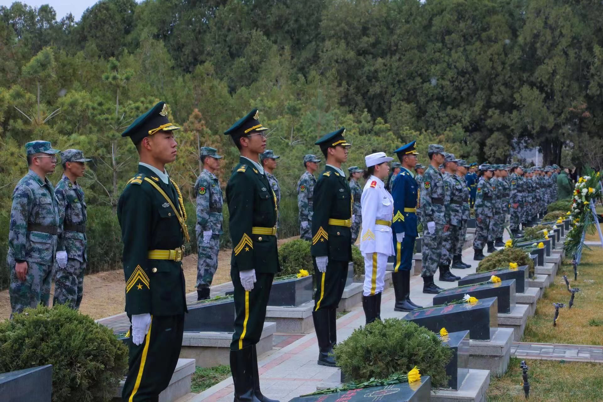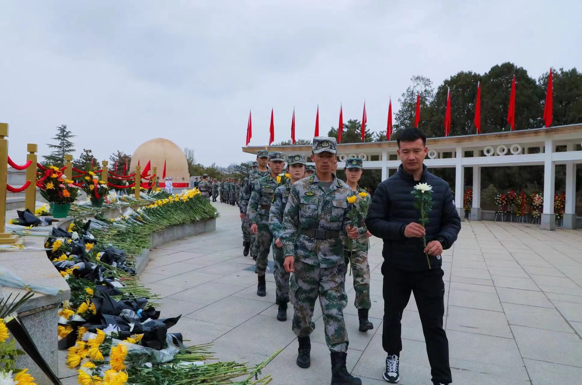 师生代表在革命烈士纪念碑前齐唱中华人民共和国国歌并依次向革命烈士敬献花篮,表达对革命烈士的崇高敬意和无限哀思。在“卫国戍边英雄”陈红军烈士墓前,师生代表认真倾听工作人员讲解关于陈红军烈士的英雄事迹,蹲下身用心擦拭自己面前的墓碑。