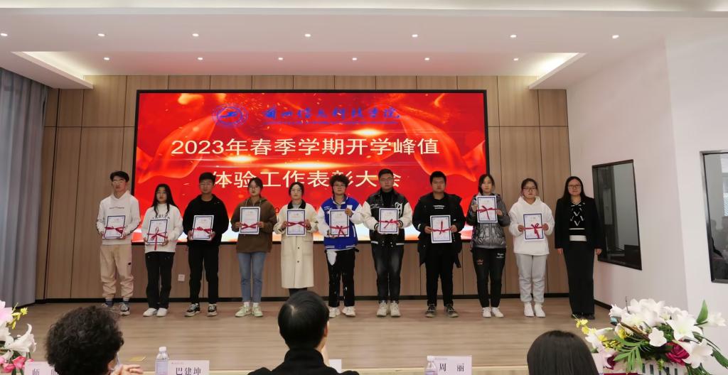 在奏唱庄严的国歌后,周丽宣读了《关于表彰2023年春季学期开学峰值体验工作先进个人的决定》文件,校领导分别为获得开学峰值体验工作的17名“策划大使”、11名“赞助大使”、13名“保卫大使”、20名“暖心大使”、246名“参与大使”进行了颁奖。校内优秀商户代表马肖勇同志和学生代表胡锦鹏同学分别发言。