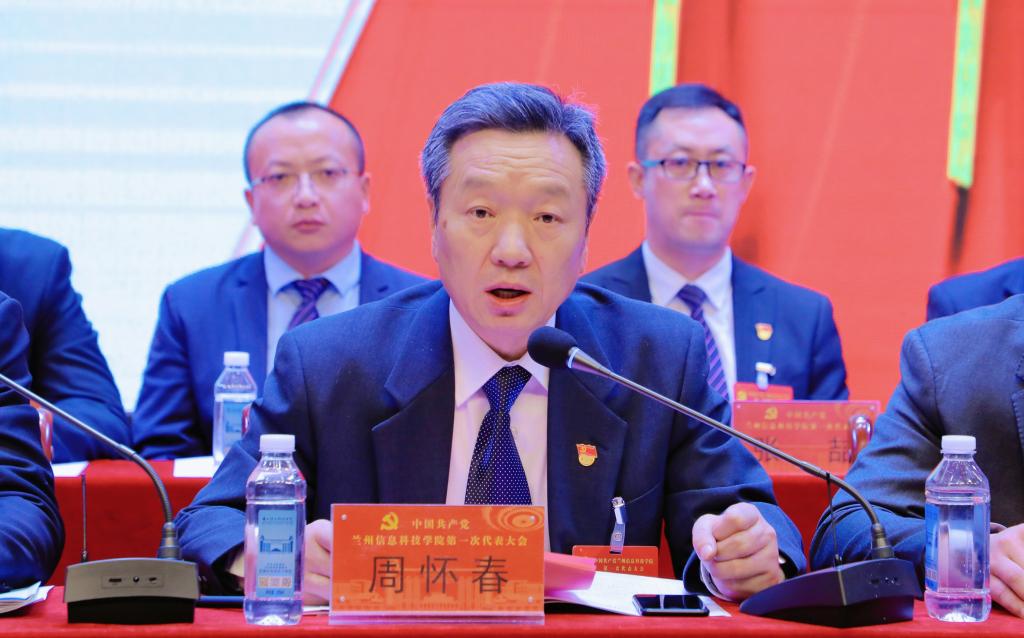 校党委书记周怀春代表中国共产党兰州信息科技委员会作了题为《坚守社会主义办学方向聚焦立德树人根本任务为开创学校事业高质量发展新局面努力奋斗》的报告。报告分为三个部分:一是学校党委近年来工作回顾;二是新时期学校党建及思想政治工作的指导思想和奋斗目标;三是新时期学校党建及思想政治工作的主要任务。报告全面总结了在省委教育工委的正确领导下,围绕建设特色鲜明的区域一流高水平应用型大学的办学目标,在改革创新、开拓进取,强化内涵建设,提升办学水平等方面取得的显著成绩。报告指出,学校党委政治核心作用充分发挥;师生员工理想信念更加坚定;学校教育事业发展提质增效。回顾近年来驰而不息的奋进之路,学校积累了宝贵的经验,一是始终坚持发挥党的政治核心作用是学校党建工作的基本要求;二是始终坚持立德树人根本任务是学校党建工作的神圣使命;三是始终坚持加强党员教育管理、发挥好先锋模范作用是学校党组织的政治责任;四是始终坚持党建创新是做好学校党建工作的重要举措。