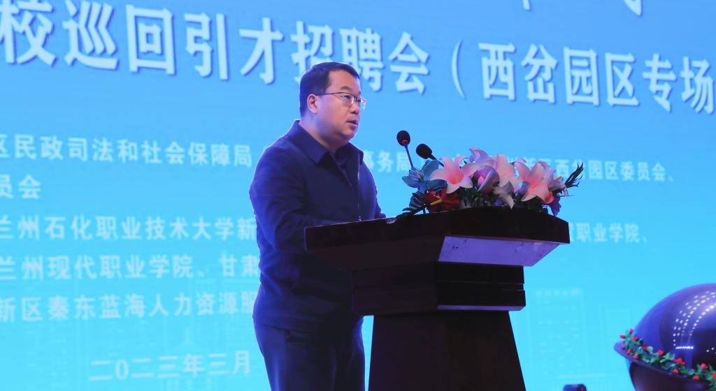 兰州新区西岔园区党委书记龙卫东在致辞中指出,“新区要发展、人才是关键”,当前兰州新区正以昂扬向上的奋斗姿态全面开展“三抓三促”行动,探索中国式现代化建设的“新区路径”,比以往任何时候都更加渴求人才,也比任何时候都更有条件成就人才,不仅希望有情怀、有胆识、有才能的同学选择新区,在新区开辟实现自己梦想和价值的新天地,还希望各用人单位要着眼长远发展大计,全力营造重视人才、尊重人才、关爱人才、成就人才的浓厚氛围。兰州新区西岔园区管理委员会也将不断健全完善人才引育政策,全力做好人才服务,帮助解决引进人才的人事关系、社会保障、住房安居等现实问题,让各类人才来得“顺心”、干得“舒心”、留得“安心”。