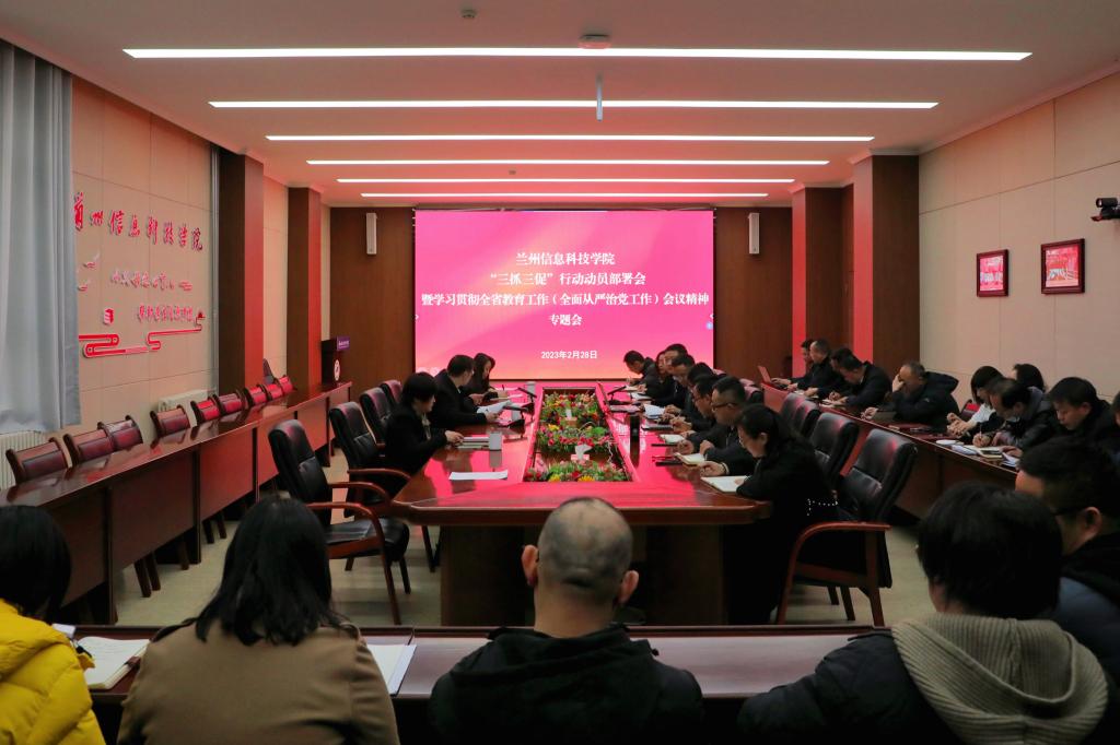 会议传达学习了全省及全省教育系统“三抓三促”行动部署会议精神和全省教育工作会议暨全面从严治党工作会议精神,安排部署学校“三抓三促”行动和贯彻落实全省教育工作暨全面从严治党工作会议精神的工作。