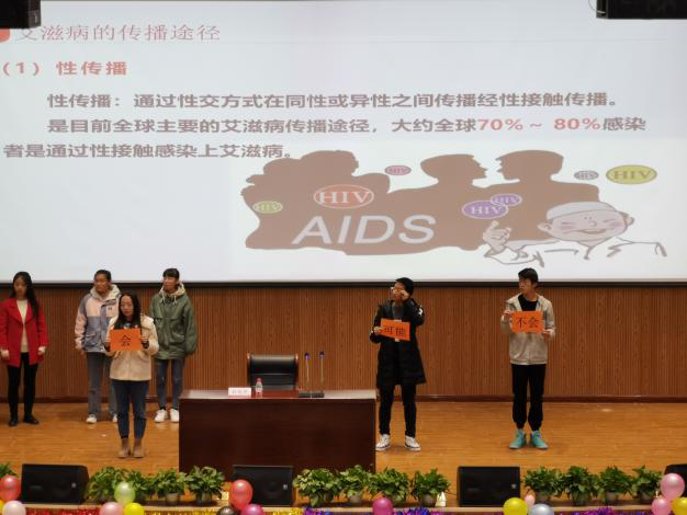 11月20日下午14:00甘肃卫生职业学院附属医院急诊科副主任杜俊艳医生在一号报告厅开展以“预防艾滋病”为主题的讲座。杜俊艳医生告诉同学们,艾滋病是一种由艾滋病病毒(HIV)引起的危害性极大的传染病。HIV病毒能攻击人体的免疫系统,使人体丧失免疫功能,并且潜伏期长达8~9年,HIV携带者在成为病人前是没有任何预兆的。在讲座过程中,杜俊艳医生通过进行几个有趣的小游戏来让同学们了解到艾滋病通常是以性交和血液交流来传播的,同潜伏HIV的人性交、公用针具、血液触碰等都有可能感染艾滋病病毒。杜俊艳医生强调,在生活中一定要洁身自好,做好预防艾滋病的工作,才能防患于未然。通过本次的主题讲座,同学们了解到了不少的关于艾滋病的知识,同时也学会了如何预防艾滋病。