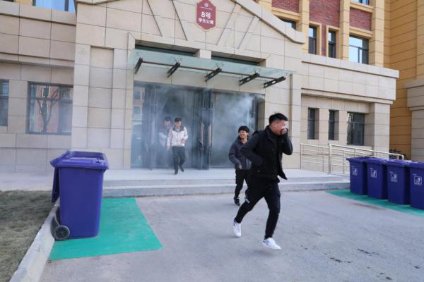 11 月27 日下午15 : 00校宿舍宿舍管理委员在八号学生公寓组织开展了消防安全疏散演练,经学校精心组织,周密安排,各层楼梯和走廊负责的老师以最快的速度到达所在的岗位,并按照各岗位的职责组织学生疏散。同学们也沉着冷静,互相合作,一切听从安排。不过在安全疏散过程中还是存在一些问题,由于人数过多,以至于在楼道内发生堵塞,出现了短暂的停顿,这为安全疏散带来了隐患,但总体来说安全疏散还是很成功的。希望同学们在今后遇到突发性事件时能够从容应对,不急不躁,不慌不忙。