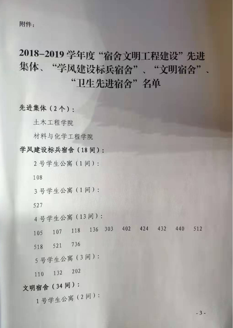 兰州理工大学技术工程学院关于表彰2018—2019学年度“宿舍文明工程建设”先进集体、“学风建设标兵宿舍”、“文明宿舍”、“卫生先进宿舍”的决定