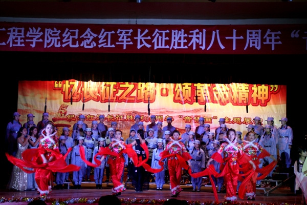 2016年11月13日晚7:00,学院在大学生活动中心隆重举行纪念长征胜利80周年“忆长征之路•颂革命精神”音诗画主题展演。全体院领导,全体中干及各党总支、党支部及教师和学生代表观看了晚会。