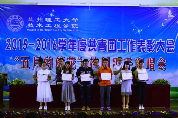 学院组织开展2015—2016学年度共青团工作表彰大会暨纪念“五•四运动”97周年“五月的鲜花”2016年校园歌手演唱会