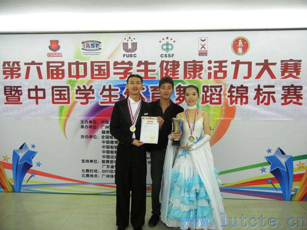 2011年12月25日,第六届中国学生健康活力大赛暨中国学生体育舞蹈锦标赛在广州体育学院落下帷幕。共有10所专业院校和25所非专业院校共计726人参加了本届比赛。我院体育舞蹈队在全国普通院校组获得摩登团体舞亚军,2010级电气工程系张盛锴同学和梁洁同学获得C组标准舞第二名和维也纳华尔兹单项第二名,2010级材料科学与工程系杨涛同学和2010级电气工程系张炜同学获得C组标准舞第三名、华尔兹单项第三名和探戈单项第三名。同时我院体育舞蹈队教练员任辉老师和刘曼冬老师被评为“优秀教师”。