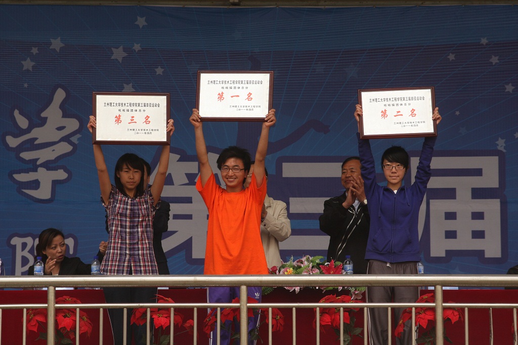 学院第三届田径运动会在经历了三天的精彩赛程后,于2011年4月29日上午在田径运动场落下帷幕。学院院长王瑞祥,党委书记、副院长李骐,党委副书记、副院长王佰成,副院长谢黎明及各部门负责人出席了闭幕式。闭幕式由副院长谢黎明主持。