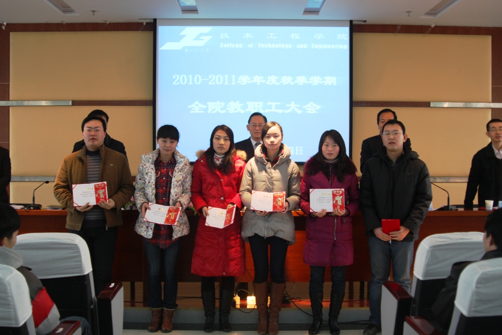 大会上,党委副书记、副院长王佰成宣读了《关于表彰兰州理工大学技术工程学院第三届教师讲课竞赛获奖教师的决定》。副院长谢黎明宣读了《关于表彰甘肃省第四届大学生“创新杯”计算机应用能力竞赛获奖指导教师的决定》。随后,各位院领导为获奖教师颁奖。