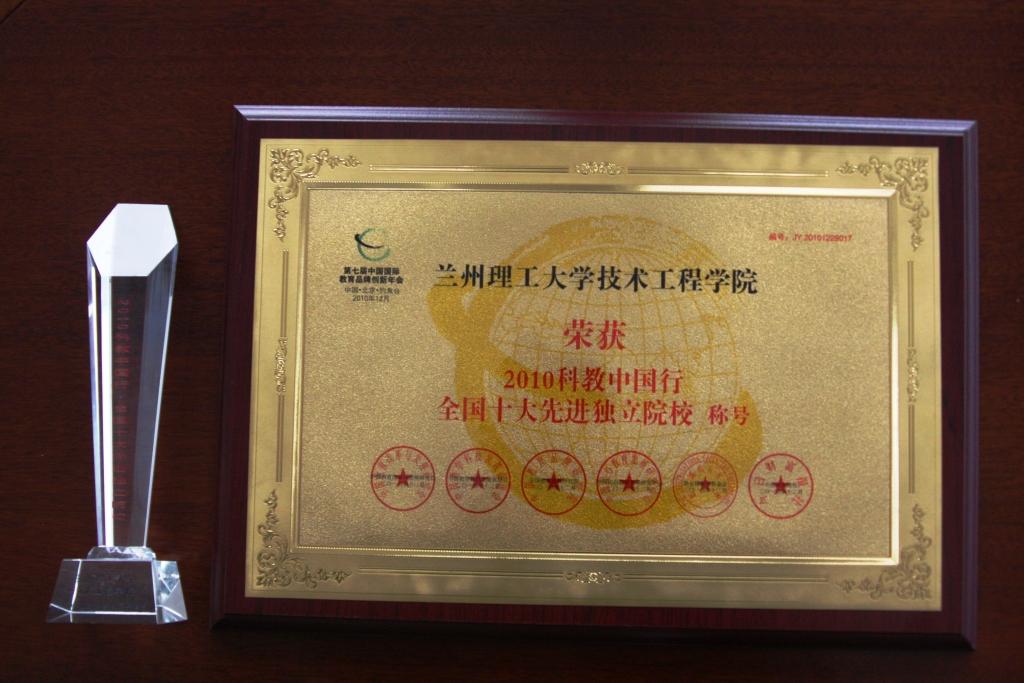 学院荣获“2010科教中国行•全国十大先进独立院校”称号