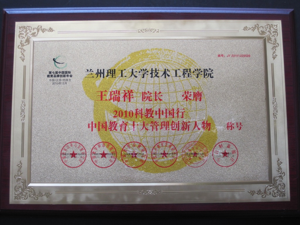学院院长王瑞祥荣膺“2010科教中国行•中国教育十大管理创新人物”