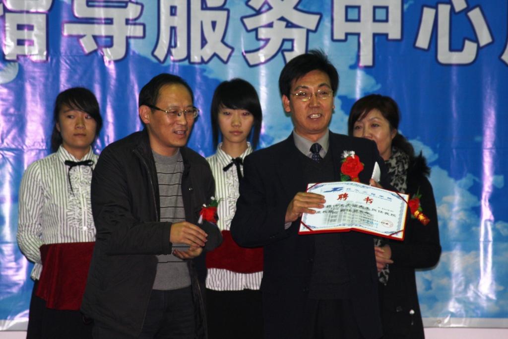随后,学院院长王瑞祥为心理健康教育指导服务中心讲座教授彭德华、王光荣、杨玲颁发聘书。
