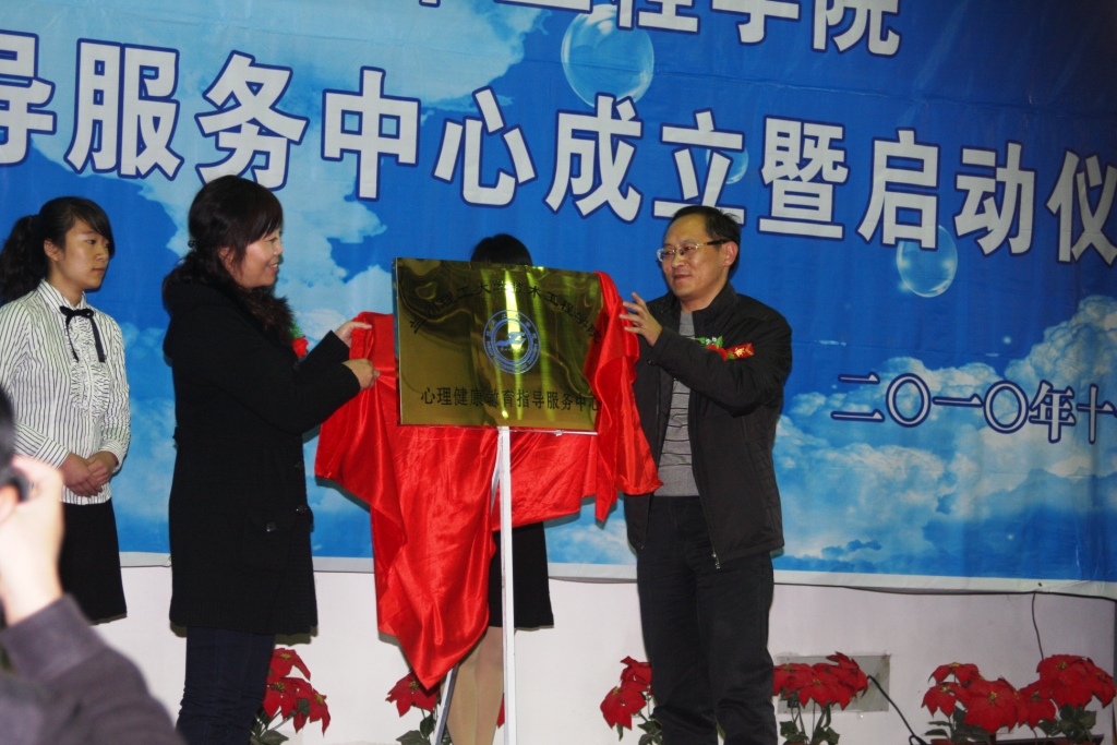 仪式最后,学院院长王瑞祥与杨玲教授共同为心理健康教育指导服务中心揭牌。