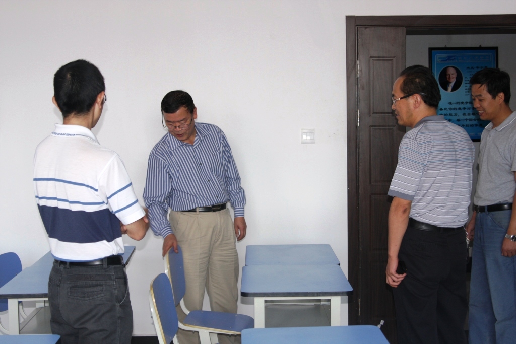 王瑞祥院长首先向王晓明校长介绍了学院近期建设发展及新学期教学情况。随后,王晓明校长先后参观了新建求是楼内的语音室、计算机实验室、化学实验室、物理实验室及心理咨询室等。王校长详细询问了各类设备和仪器的配备和使用情况,王瑞祥院长对各实验室的基本情况也一一作了介绍。