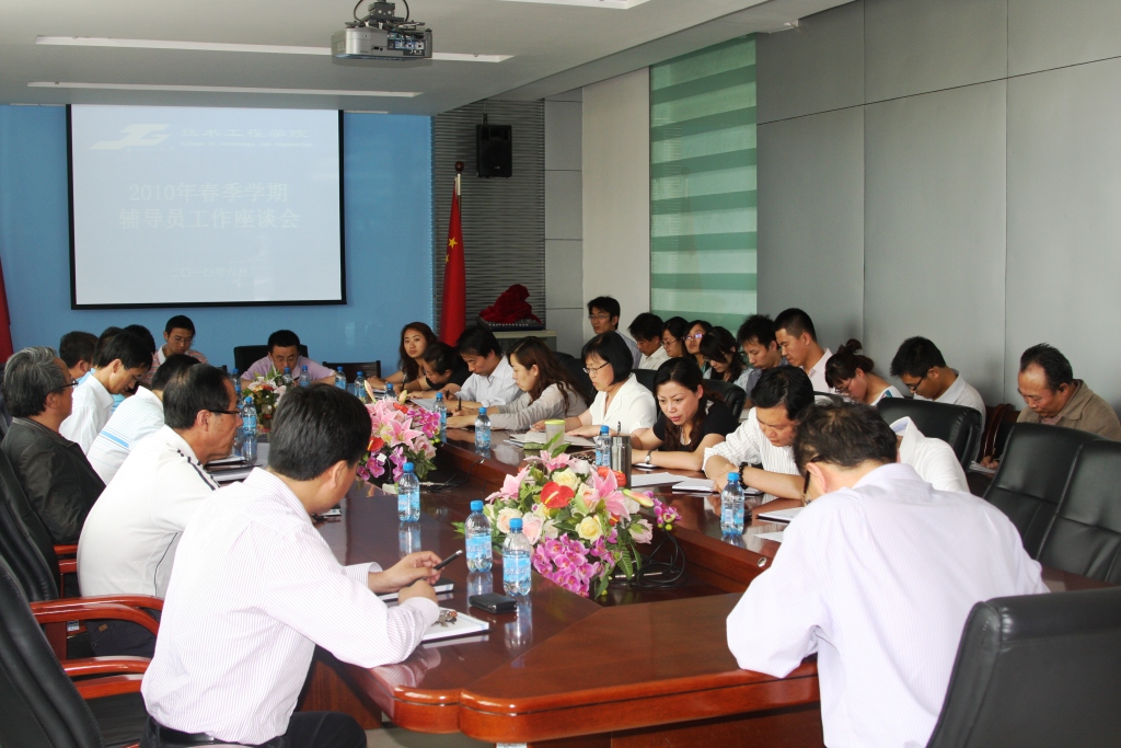 2010年6月11日下午3:00,学院在砺志楼行政办公区402会议室召开了2010年春季学期辅导员工作座谈会,学院院长王瑞祥,党委副书记、副院长王佰成,副院长谢黎明及相关职能处室负责人和学生处全体学生工作干部参加了会议。会议由学院党委副书记、副院长王佰成主持。
