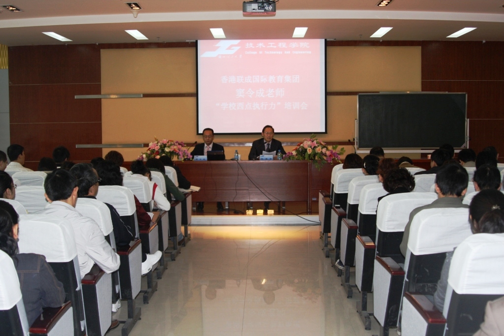 为进一步提高我院行政人员管理水平和业务水平,使之更好地服务于我院广大师生,2010年5月17日,学院特邀请香港联成国际教育集团有限公司窦令成讲师为我院教职工做了一场主题为“学校西点执行力”的培训。窦令成老师从用心工作、西点坚决执行、责任人思维、感恩的心四个方面深入浅出地阐述了自己的观点,为各位教职工在工作和生活中如何做事与做人提出了中肯的建议,使各位教职工从工作、生活、做人等方面受到了启发。特别是在“感恩的心”这个环节,窦老师带领各位教职工进行了精彩的互动,使本次培训达到了高潮。