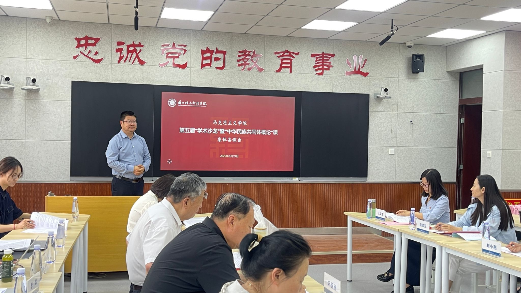 为了深入学习贯彻落实习近平总书记关于加强和改进民族工作的重要思想,进一步深化铸牢中华民族共同体意识教育,及时总结“中华民族共同体概论”课程建设和用好教材等方面的经验和问题,进一步提高“中华民族共同体概论”课教学质量,充分发挥课堂教学主渠道作用,不断巩固师生中华民族共同体思想基础。beat365官网唯一入口马克思主义学院于2025年6月19日-20日开展了“第五届学术沙龙”暨“中华民族共同体概论”课集体备课会,学校党委部门相关负责同志和马克思主义学院全体教师参加活动,活动由马克思主义学院院长张喆主持。