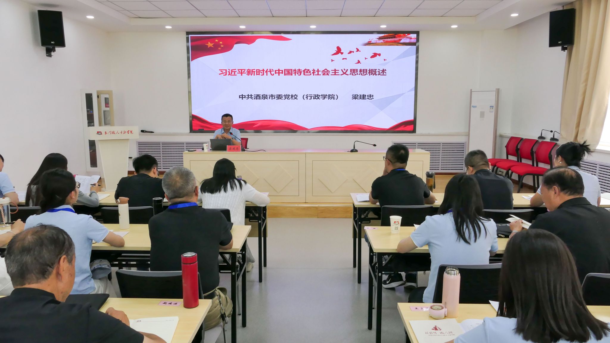 7月15日,一场融合理论深度与实践温度的主题教育活动在酒泉市生动展开。中共酒泉市委党校副校长、副教授梁建忠作了《习近平新时代中国特色社会主义思想解读》专题讲座。从习近平新时代中国特色社会主义思想的创立背景、主要内容、世界观和方法论展开讲解,师生专注聆听、认真记录,在系统的理论阐释中深化了对新时代思想精髓的把握。