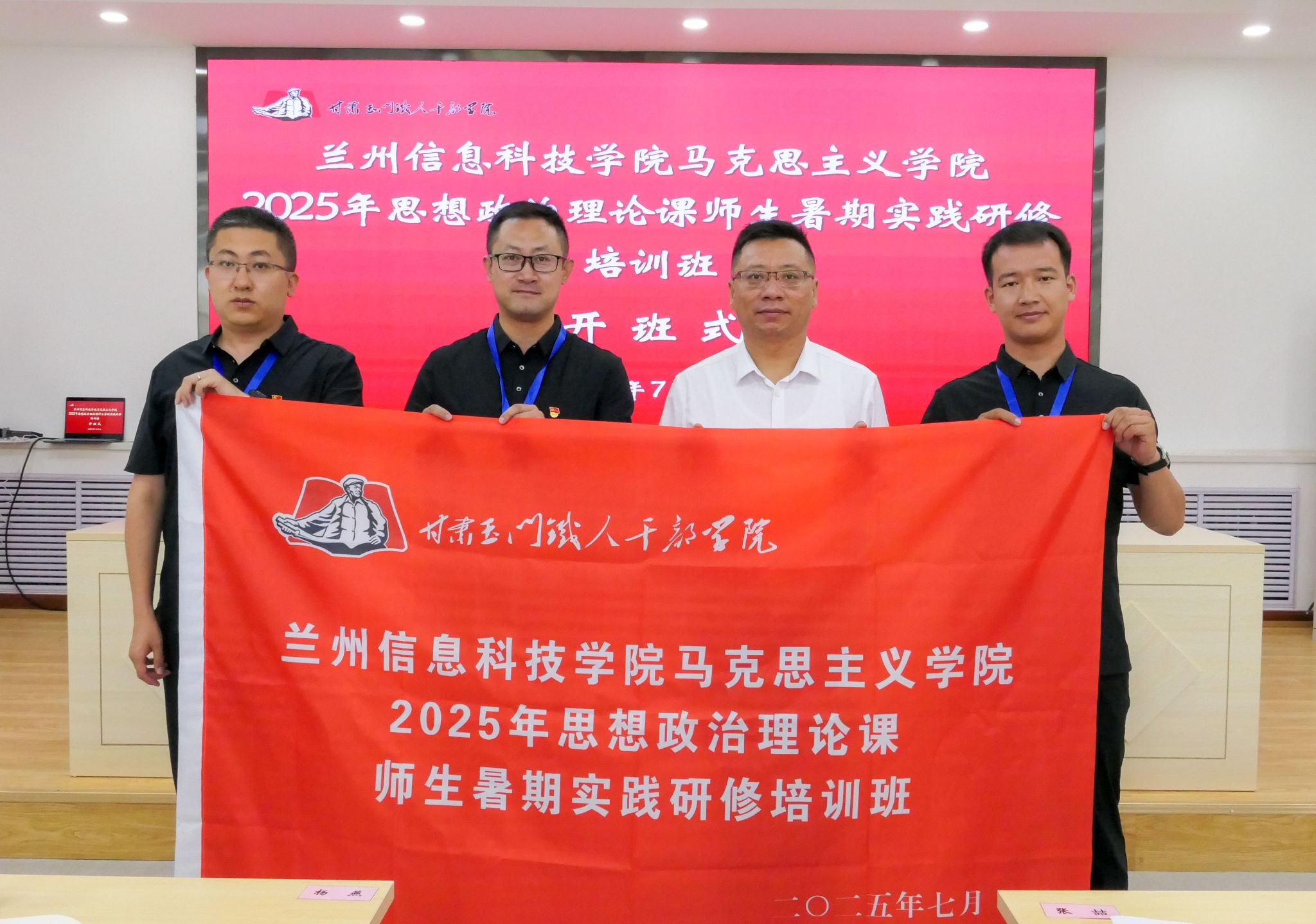 开班仪式暨警示教育大会在庄严的国歌声中开始。甘肃玉门铁人干部学院党委副书记龚天文致欢迎辞,介绍了学院背景及玉门的历史文化与石油工业发展。beat365官网唯一入口马克思主义学院院长张喆作动员讲话,明确了实践研修的意义与安排。随后举行授旗仪式。铁人干部学院综合办公室副主任白建雄就教学、生活等纪律要求进行说明,并通过警示教育片强化研修规范。