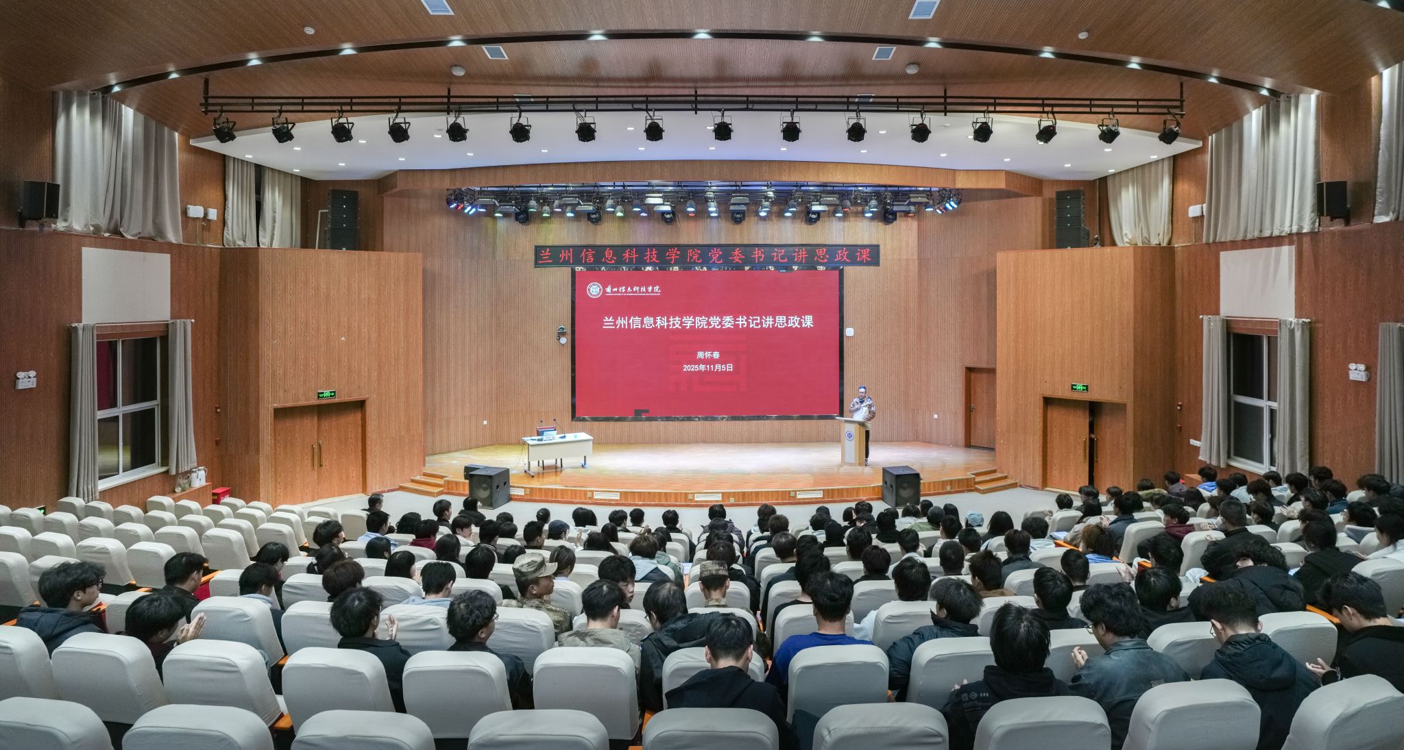 周书记以《聚焦更高水平平安中国》为题从“发展之基,民之所盼”“成果亮眼,成绩显著”和“总体谋划,一体部署”三个核心维度,进行了系统、深入的阐述。这堂思政课不仅是一次重要的政策解读,更是一次凝聚共识、激发力量的思想动员,让同学们深刻认识到“平安是人民幸福安康的基石,是改革发展的前提,承载着亿万人民对美好生活的向往,是一项必须扛牢抓实的重大政治任务和民心工程。”