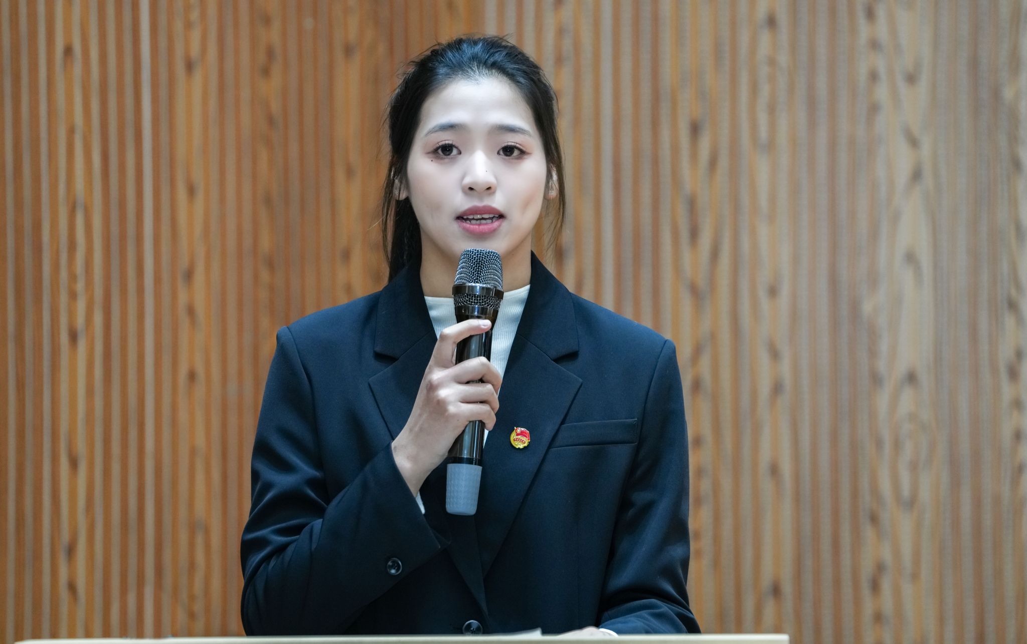 2025级学生代表宋思逸同学在发言中表达了加入产业学院的荣幸与激动之情,并代表全体新生庄严承诺,将珍惜机遇、勤学笃行,以饱满的热情投身于数智财务的知识海洋,力争学有所成,不负时代与学校的培养。