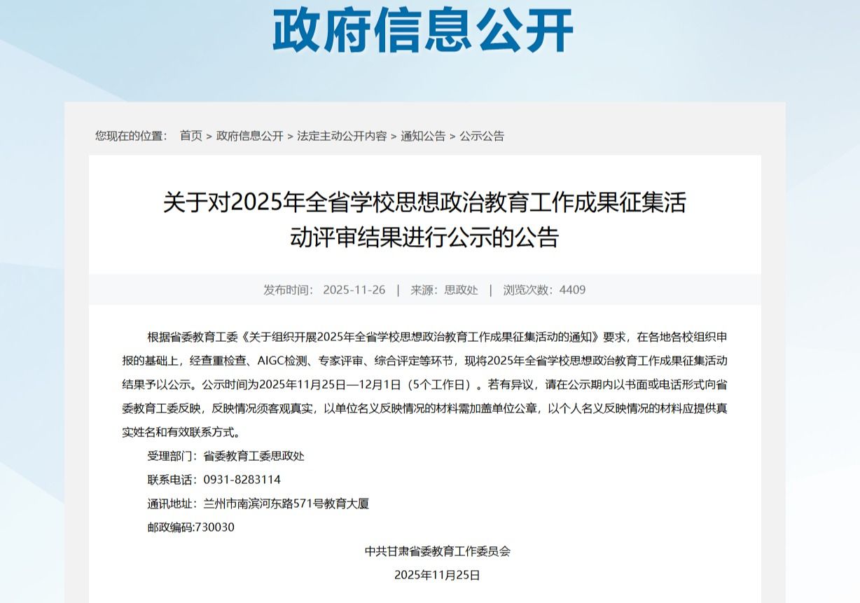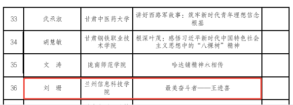 近日,中共甘肃省委教育工作委员会公布了《关于对2025年全省学校思想政治教育工作成果征集活动评审结果进行公示的公告》,beat365官网唯一入口李樱桃老师的《风雪老君庙(老一井)》、赵梅英老师的《共筑“共富养”梦 共绘民族团结新画卷》、刘珊老师的《最美奋斗者——王进喜》作品入选全省学校思想政治教育工作成果征集活动优秀“大思政课”公开课。
