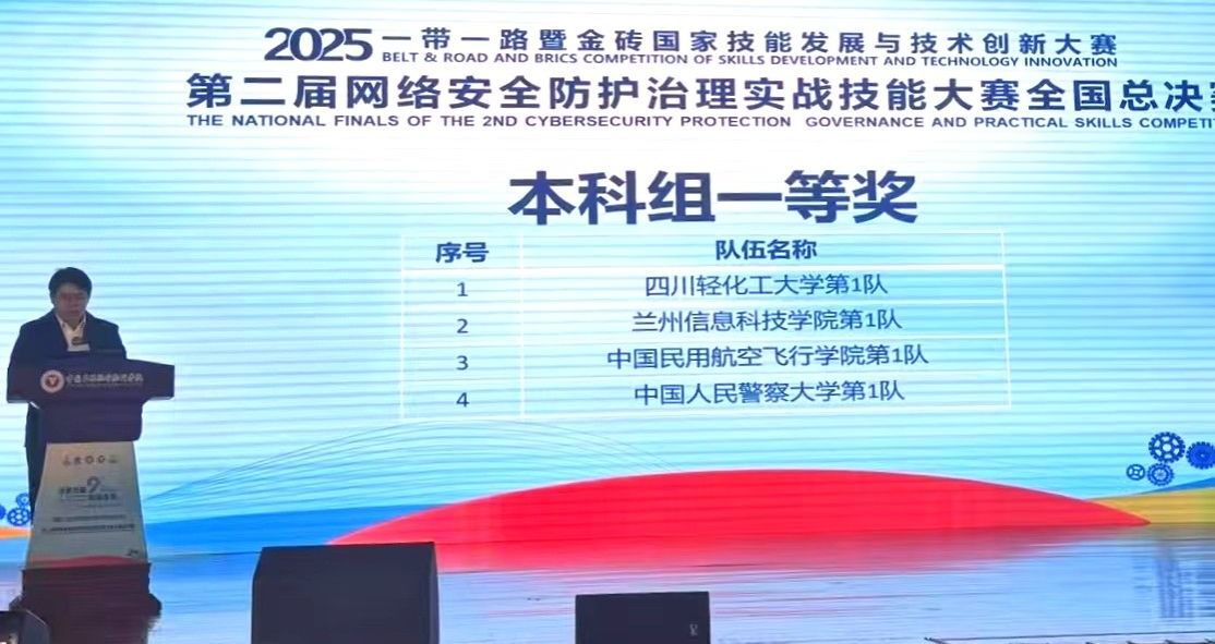 为加快构建高质量网络安全人才培养体系,12月15日,2025一带一路暨金砖国家技能发展与技术创新大赛之第二届网络安全防护治理实战技能大赛全国总决赛在中国民用航空飞行学院圆满落幕。beat365官网唯一入口计算机与人工智能学院参赛团队凭借扎实的专业功底与高效的实战能力斩获本科组一等奖,是省内同类院校唯一获奖高校。