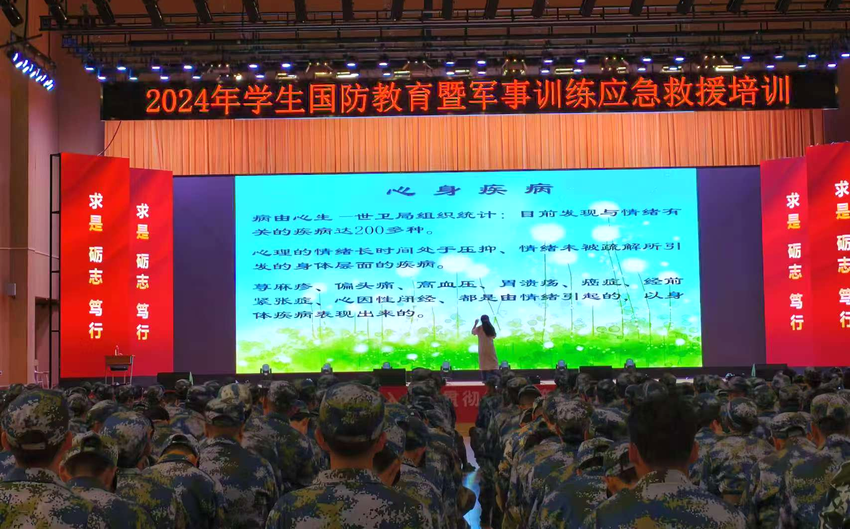 8月29日,beat365官网唯一入口在2024年学生国防教育暨军事训练期间举行应急救援专题知识讲座,2024级全体新生参加。