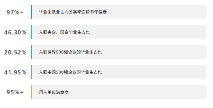 学校坚持需求导向,创新应用型特色育人体系建设,注重学生“全面培养与个性培养、通识教育与专业教育、创新成长与职业成就”的三个协同发展,联合中船、中铁、中建、中软、华为、京东等行业龙头企业合作,建设9个现代产业学院和200余家实习实训就业基地,直通500强高质量就业。