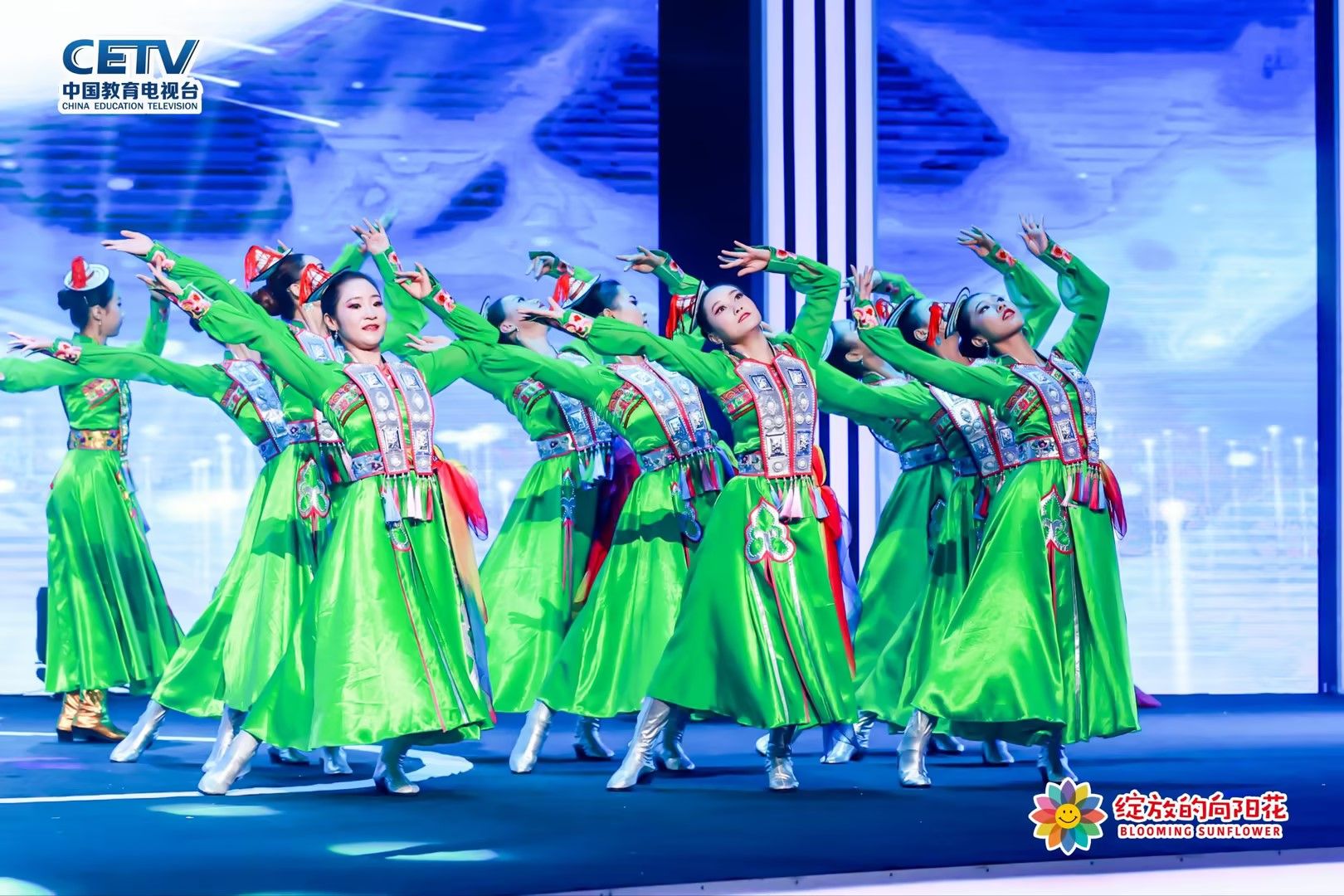 据悉,“绽放的向阳花·2023全国青少年美育成果展演”活动由中国教育电视台指导,中国教育电视台早教频道等单位主办。beat365官网唯一入口参与展演的舞蹈作品《金姑娘银姑娘》是以甘肃省独有的少数民族——裕固族传统文化和他们“东迁”为题材,描绘了祁连山的滋养孕育了一代代能歌善舞的裕固儿女,他们也世世代代用心呵护着这片绿水青山,金姑娘和银姑娘们在祁连山脚下,疏勒河水旁,青青草原上愉快地编着“褐子”的场景,展现了他们“逐水草而居,尚彩虹而衣”的习俗,讲述了在“东迁”之后,裕固族如石榴籽一般紧密团结在祖国的怀抱里,更加安居乐业、幸福生活,七彩的“褐子”也在姑娘们的巧手里变成一道道彩虹,这彩虹便是美丽中国梦的故事。