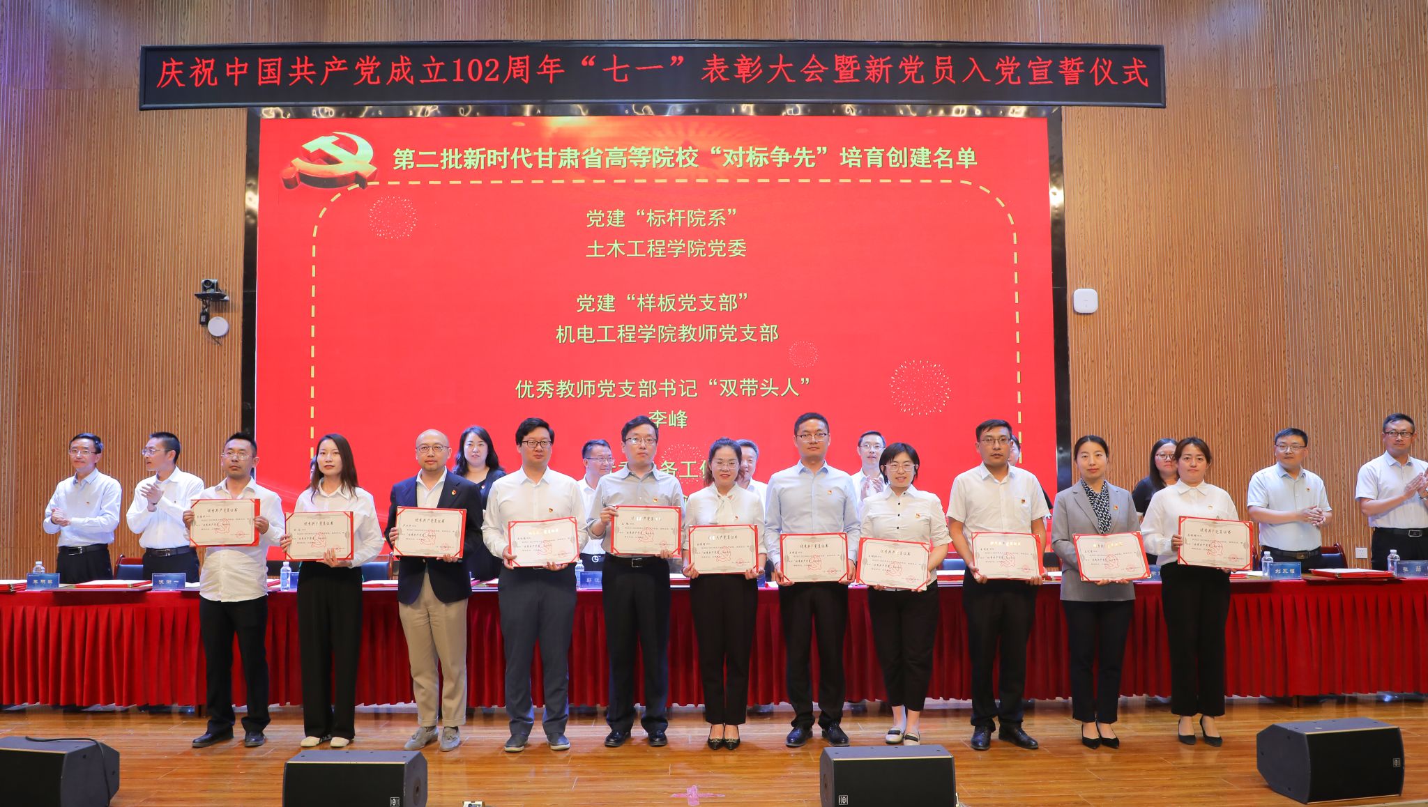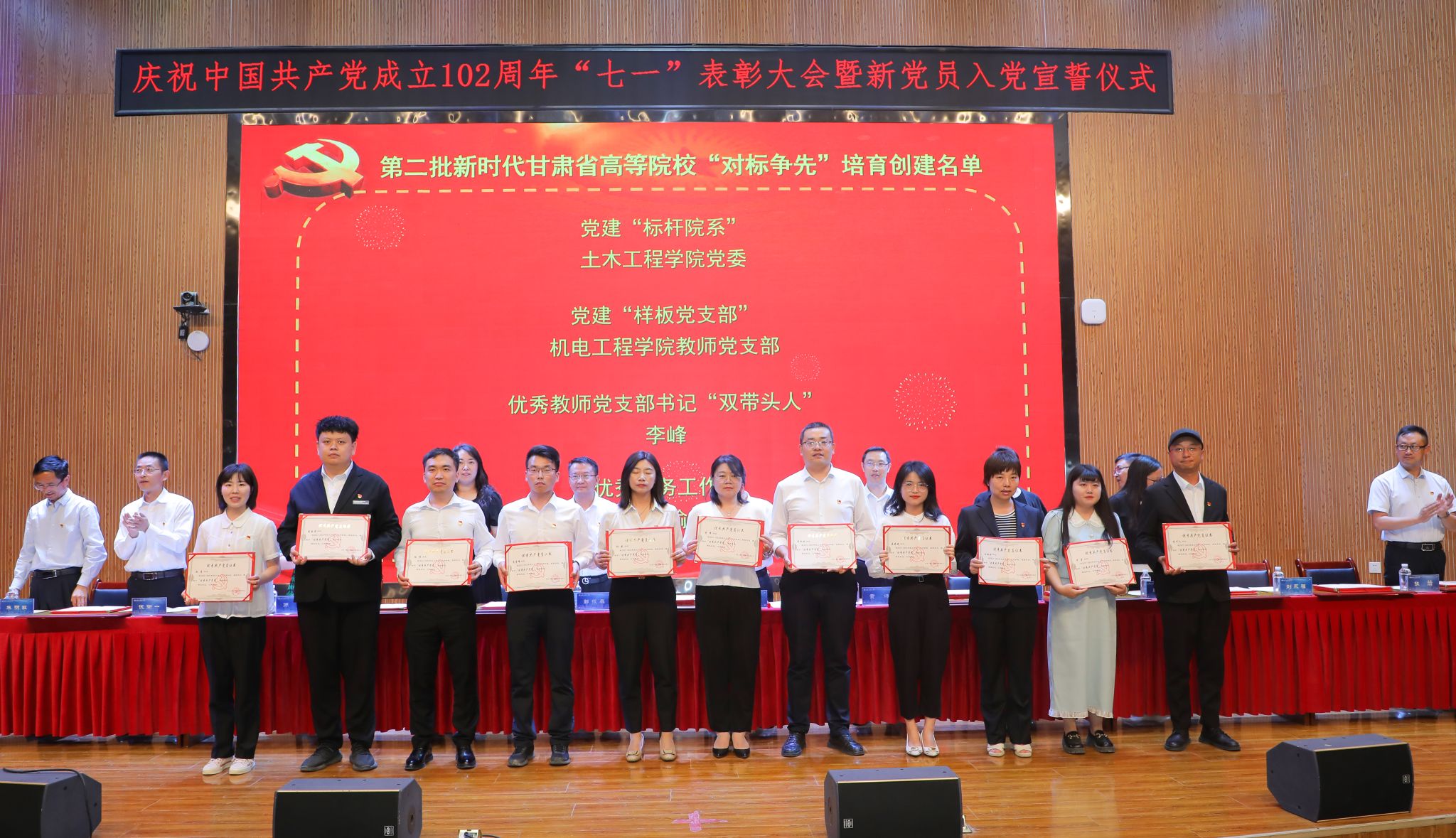 在表彰会上,宣读了第二批新时代甘肃省高等院校党建“对标争先”培育创建单位名单和学校2022-2023年度“两优一先”和“学习强国”学习标兵名单,党委委员为受到表彰的先进集体和个人进行颁奖。优秀共产党员代表、优秀党务工作者代表和先进基层党组织代表先后作了交流发言。