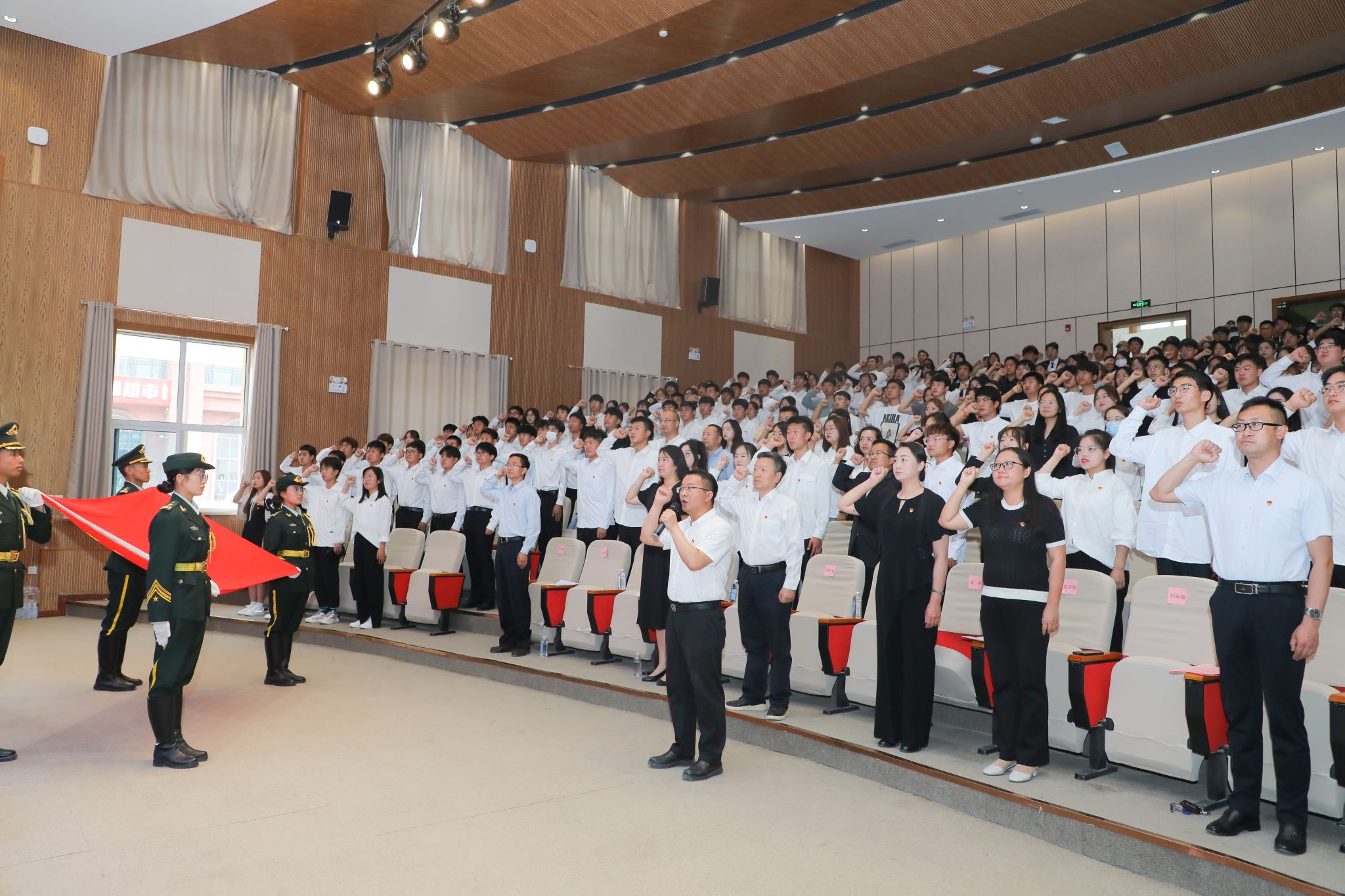 学校党委委员为2023年春季学期新发展党员代表佩戴了党员徽章。随后,在党委副书记、副校长郭筱磊的领誓下,新党员进行入党宣誓,老党员重温入党誓词。
