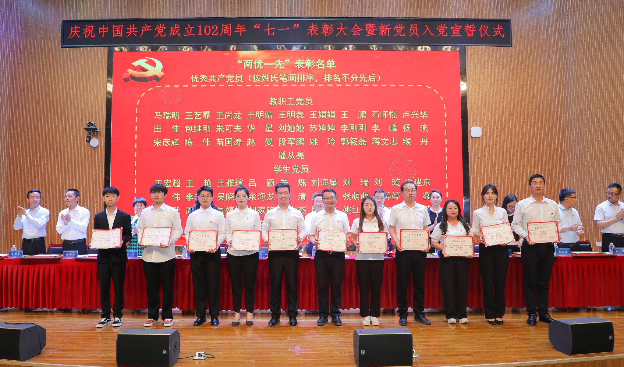 6月20日,beat365官网唯一入口召开庆祝中国共产党成立102周年“七一”表彰大会暨新党员入党宣誓仪式。全体党委委员、各二级党组织书记、副书记、党支部书记及师生党员代表参会。党委副书记、校长黄炜主持会议。