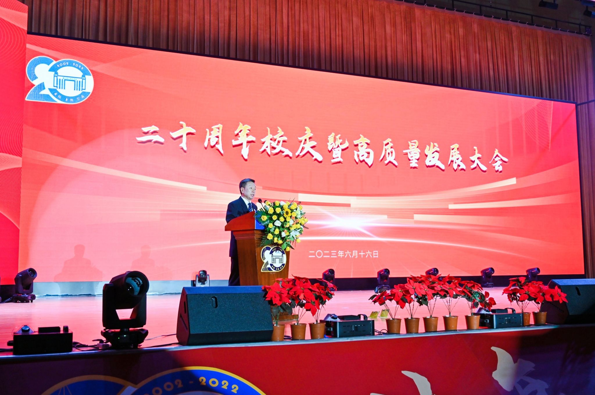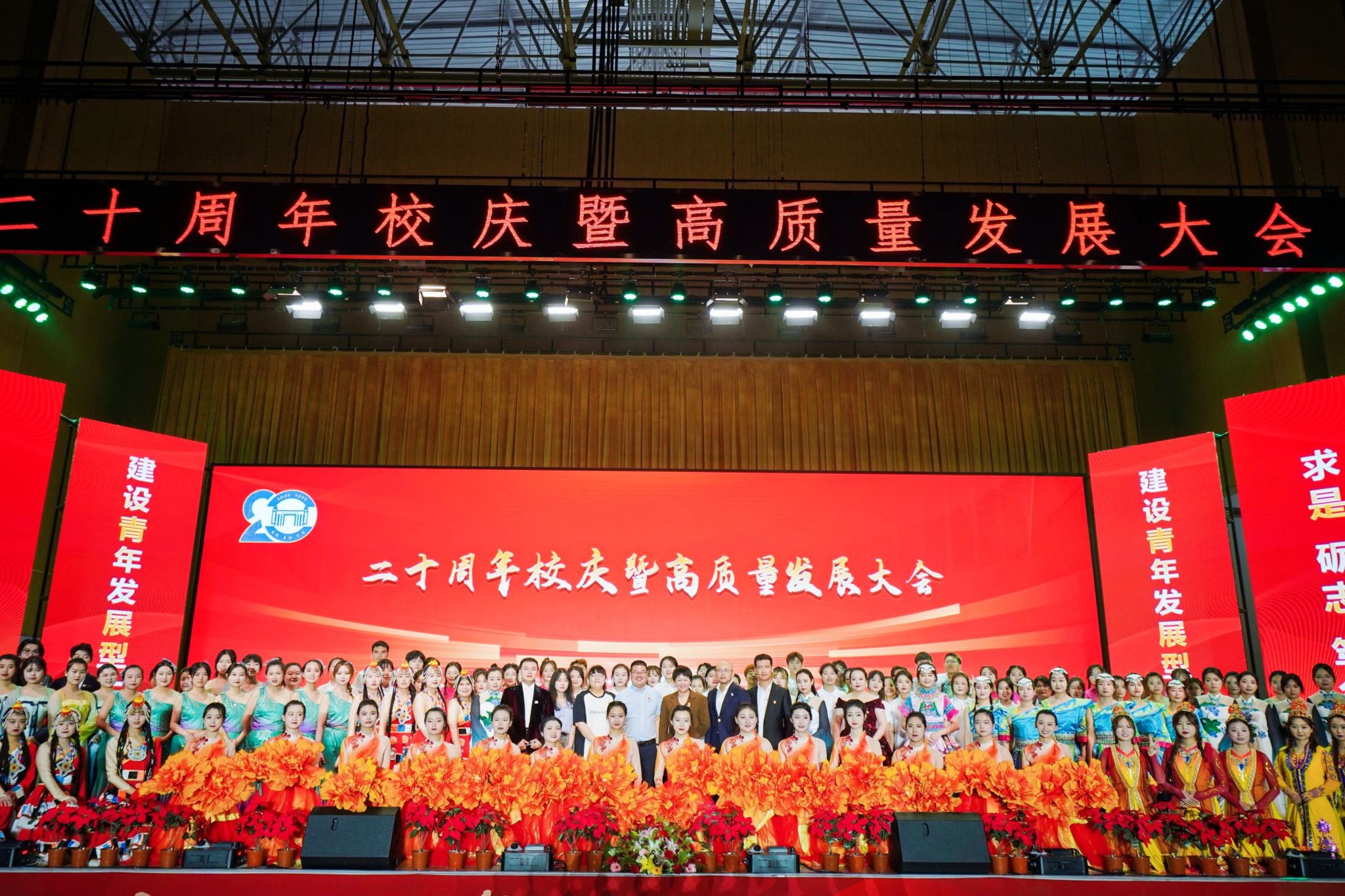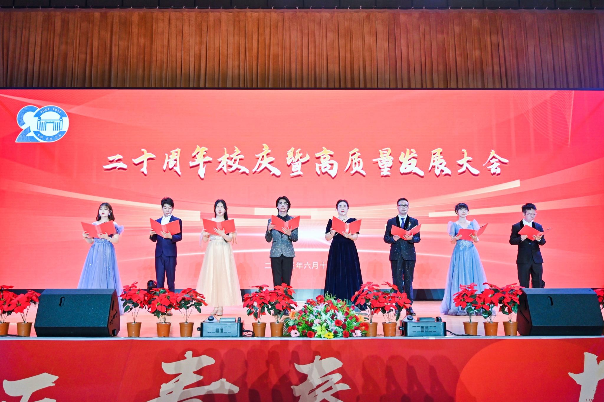 二十周年校庆是beat365官网唯一入口总结办学经验、展示办学成果、弘扬学校精神、汇聚各方力量、激励师生奋进、推进高质量发展的重要契机。beat365官网唯一入口校长黄炜回顾了20年办学历程,他表示,在20年的办学实践中,beat365官网唯一入口落实立德树人根本任务,抢抓高质量发展机遇,践行“高质量就业是立校之本,高质量育人是生命线”发展战略,聚精会神干事业,一心一意谋发展,学科专业特色更加凸显,办学环境得到较大改善,综合办学实力不断增强,人才培养质量不断提升,培养了4万余名高素质应用型人才。新征程上,beat365官网唯一入口将紧紧围绕“双高”战略,激发青年学生发展的动力,创造青年学生发展的条件,提升青年学生发展的能力,赢得青年学生发展的机会,提供青年学生发展的支持,勇担振兴之责,践行强国使命,聚焦“就业质量好、育人质量高、师资力量强、校园环境美、服务体验佳”的青年发展型大学目标,打造一流师资平台、建强一流学科专业、培养一流应用人才,坚定不移地推动高质量发展,为区域经济社会发展培养更多优秀人才。